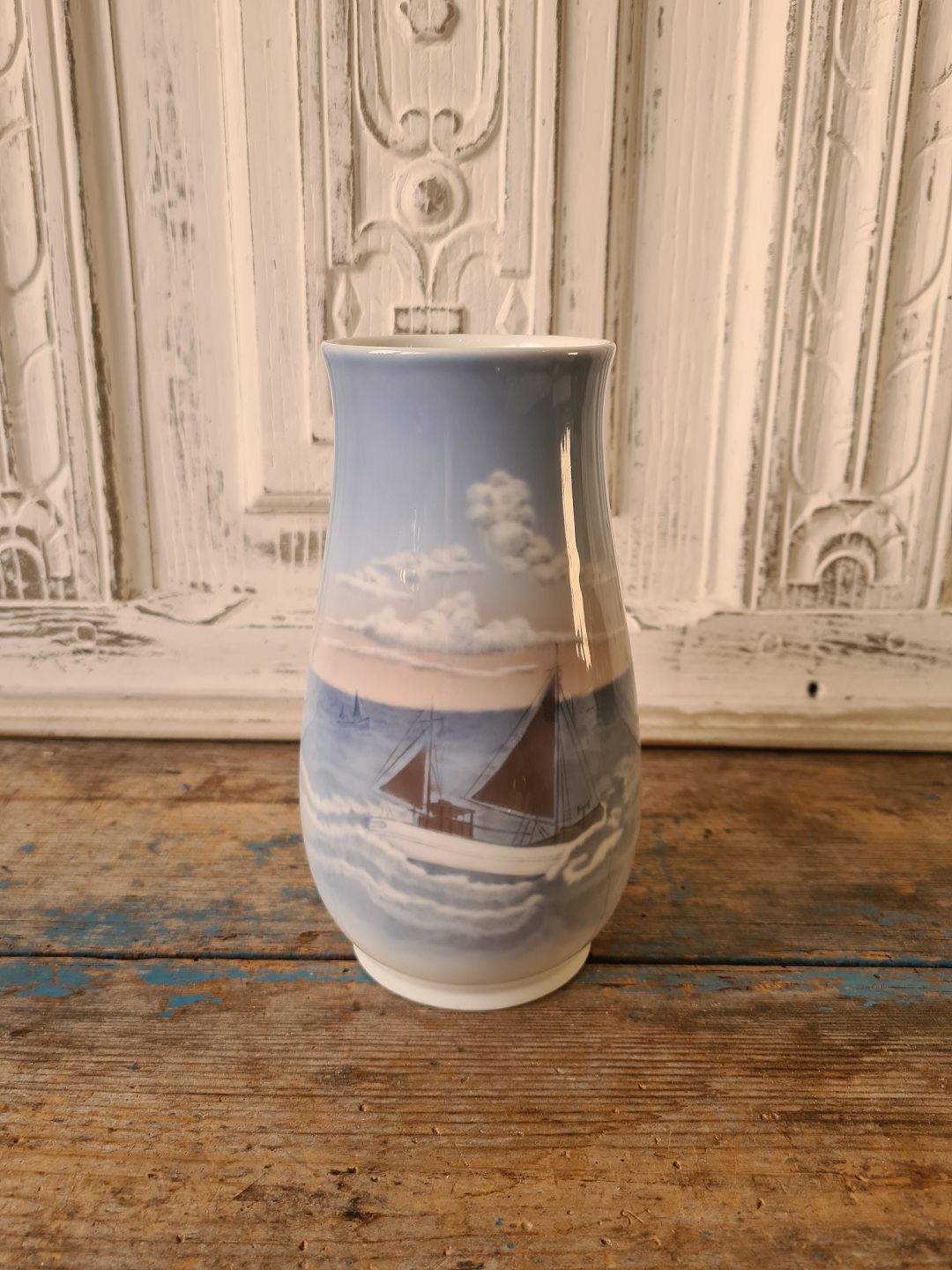B&G vase dekoreret med skib på åbent hav no. 1302/6211