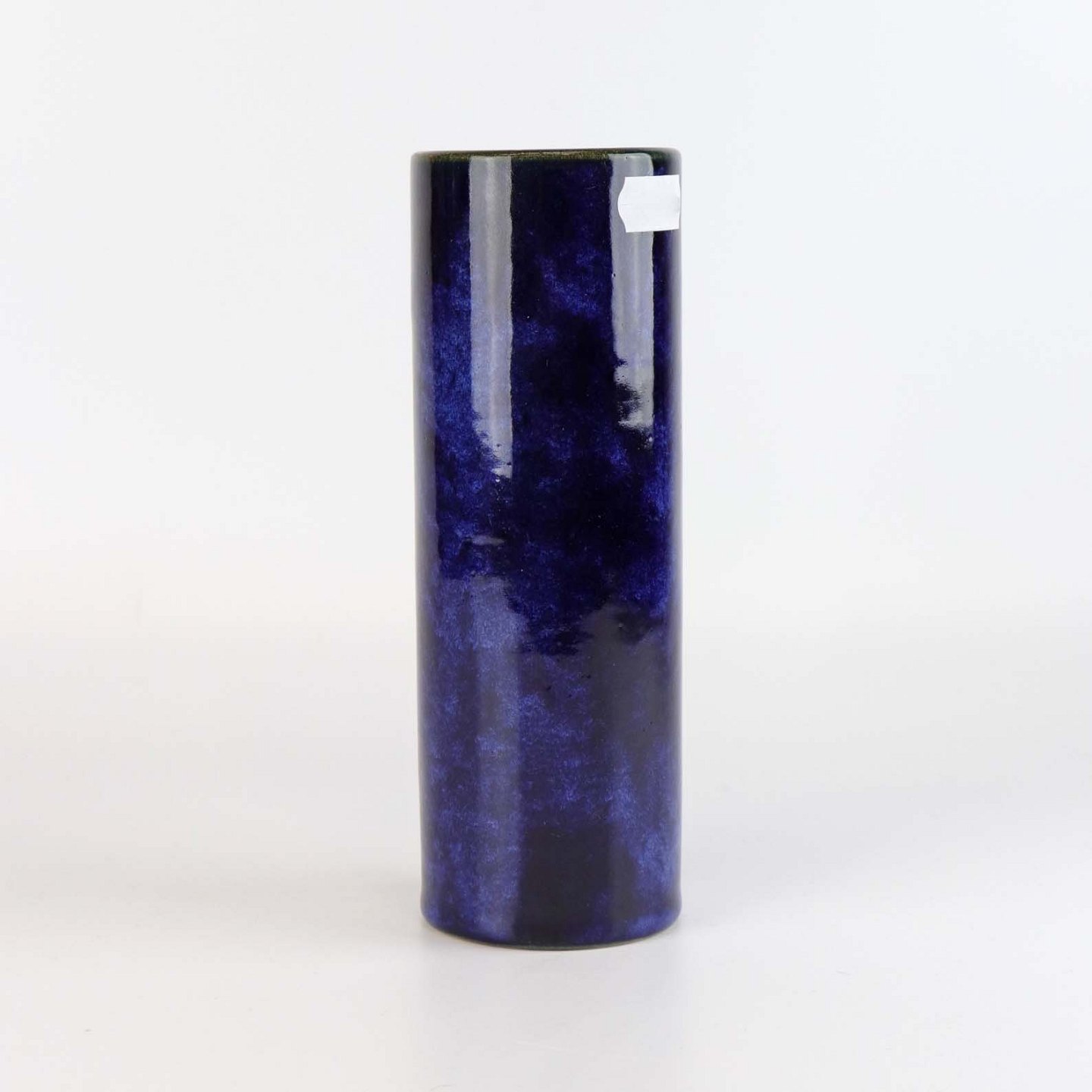 Cylinderformet vase nr 018A i blåmeleret glaseret keramik