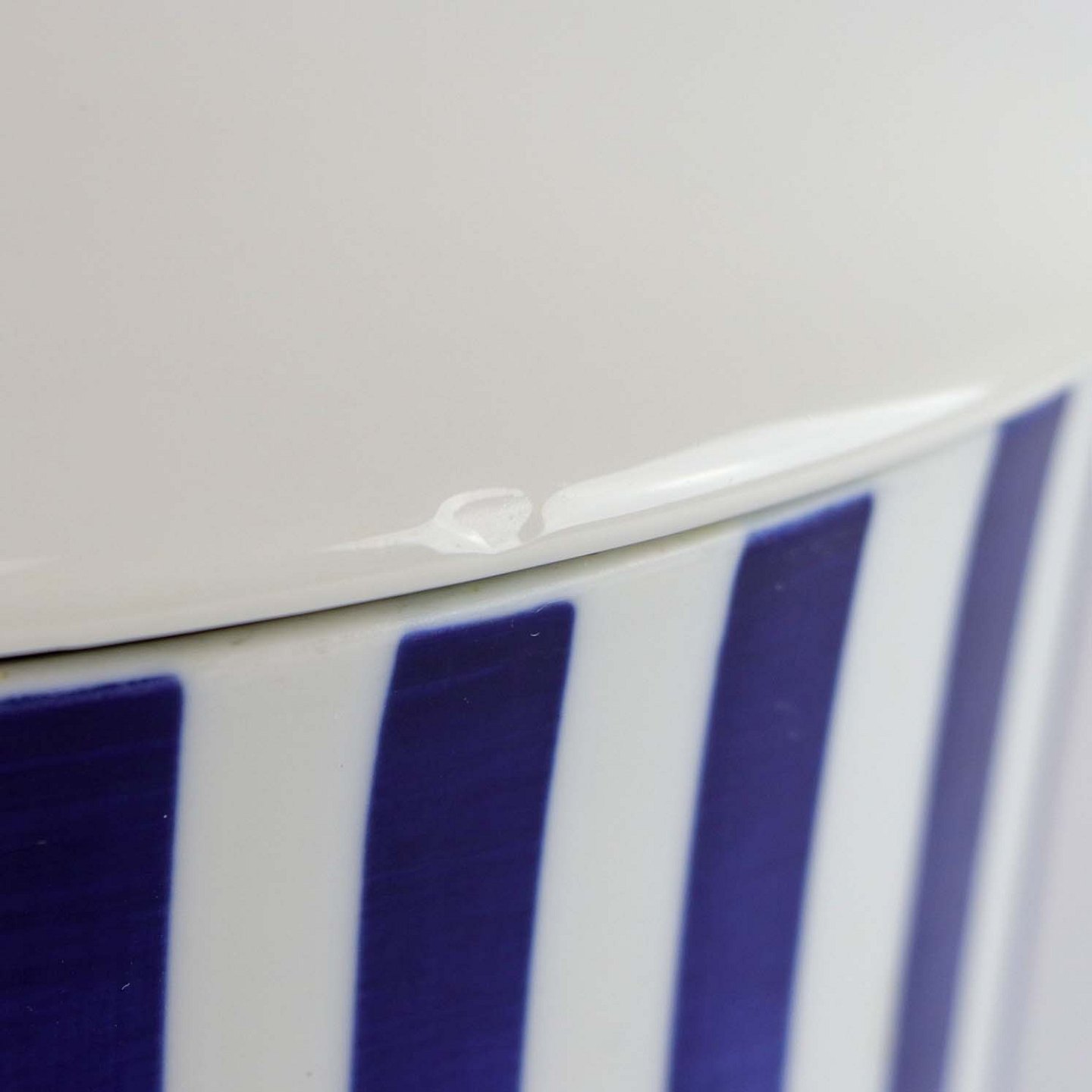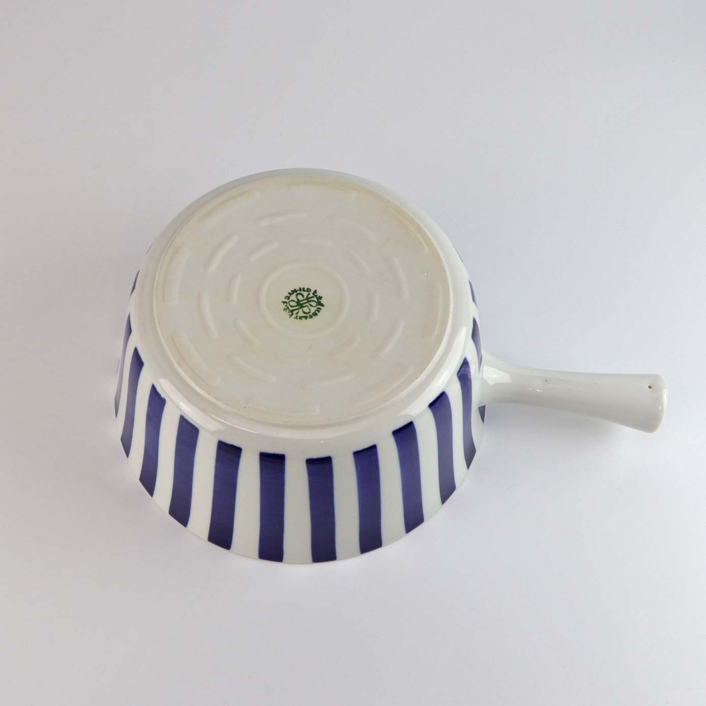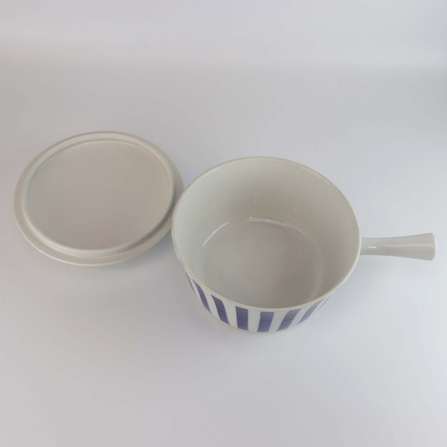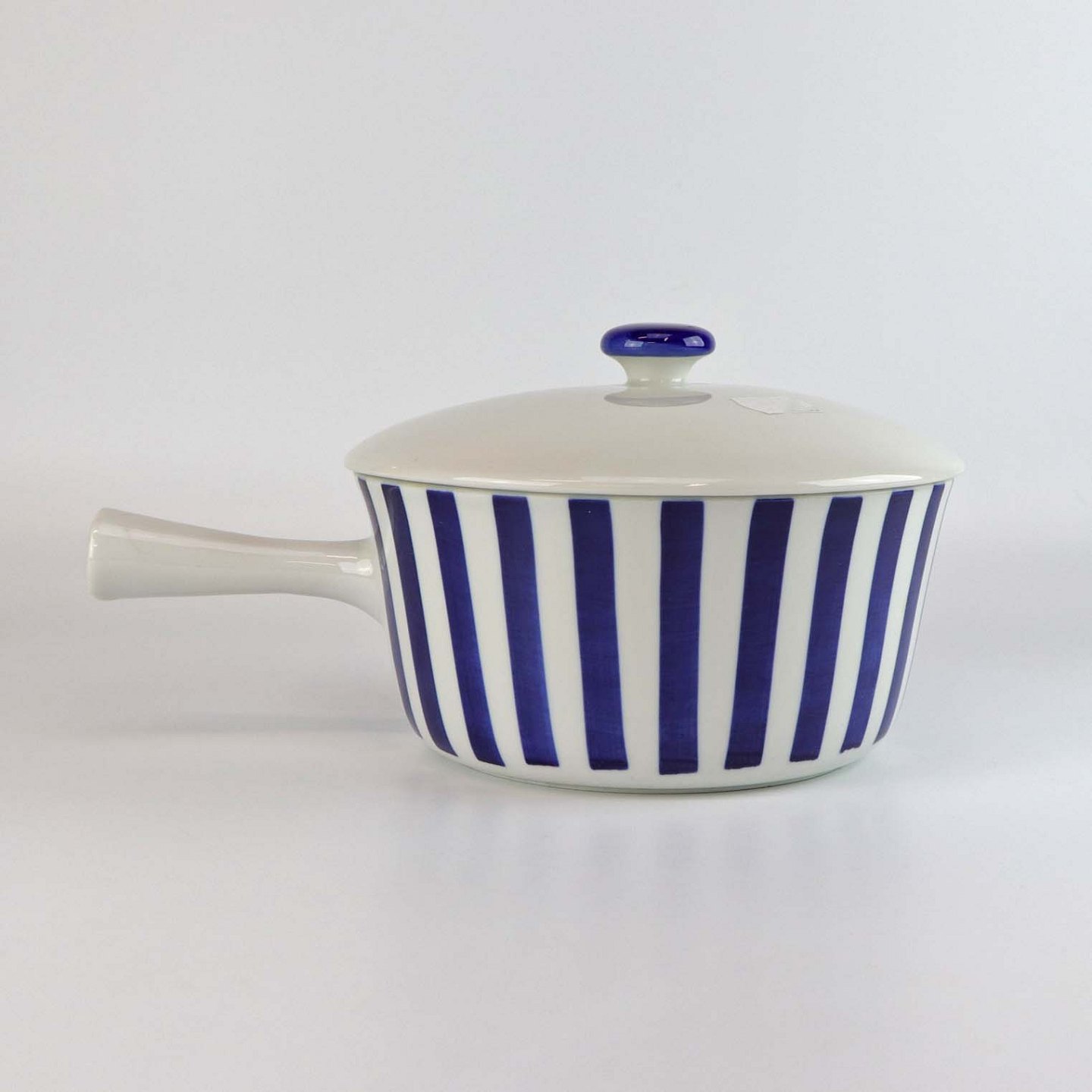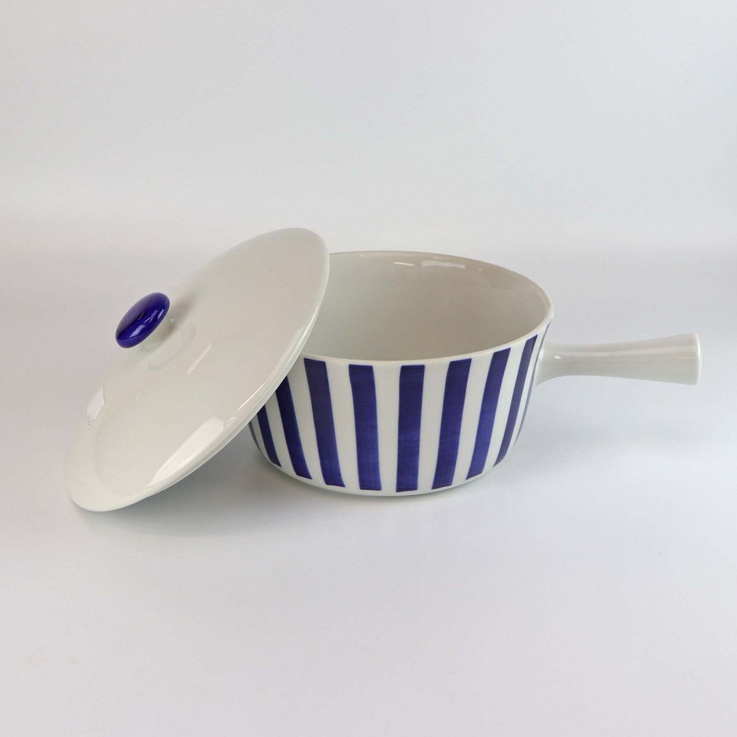 Kasserolle med hank og låg i porcelæn fra stellet blå striber