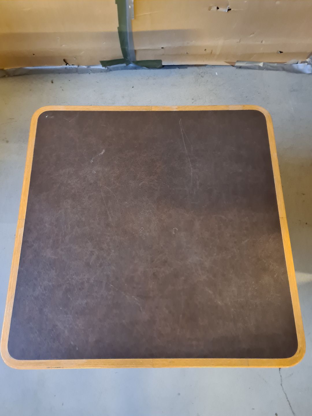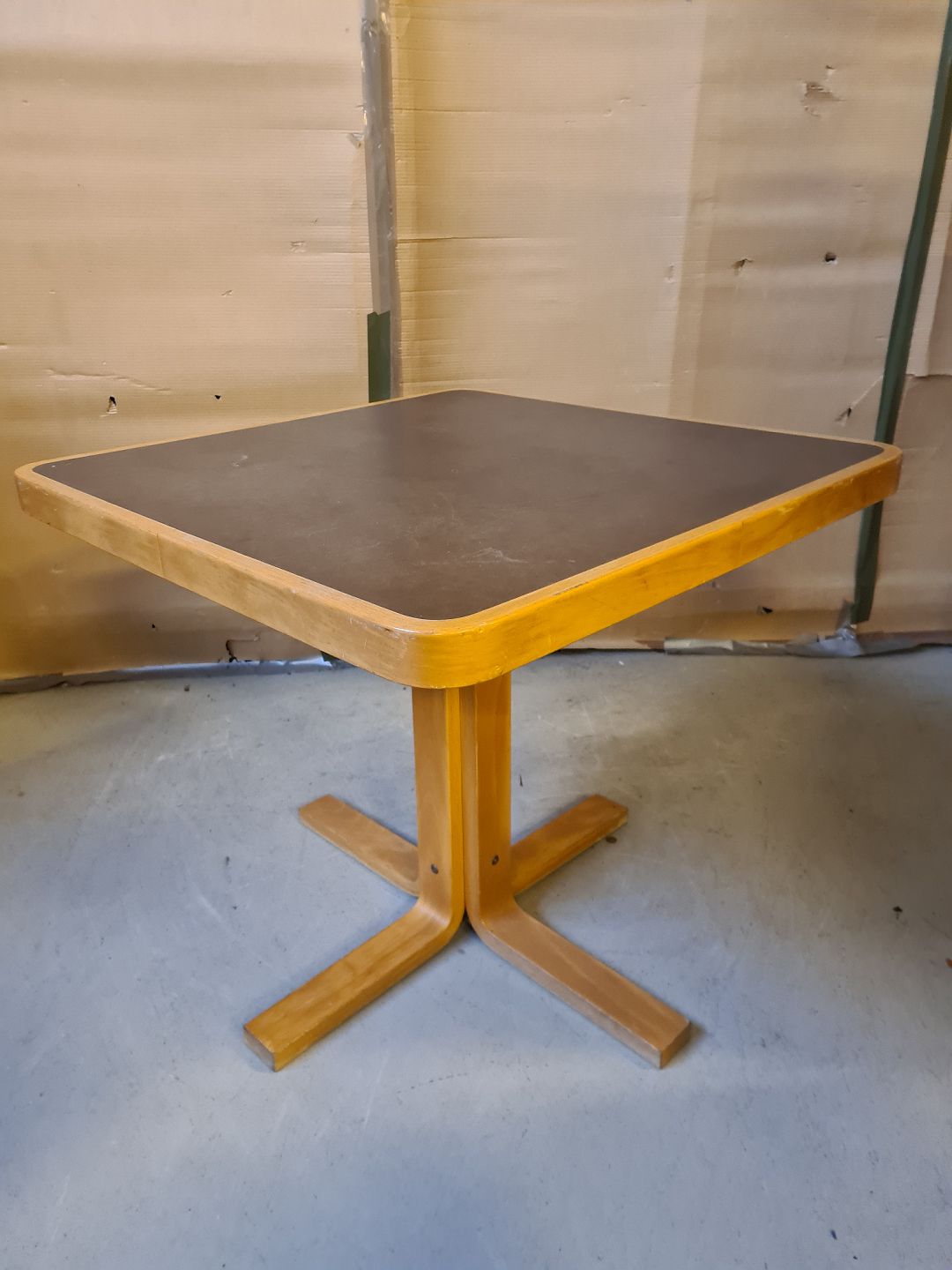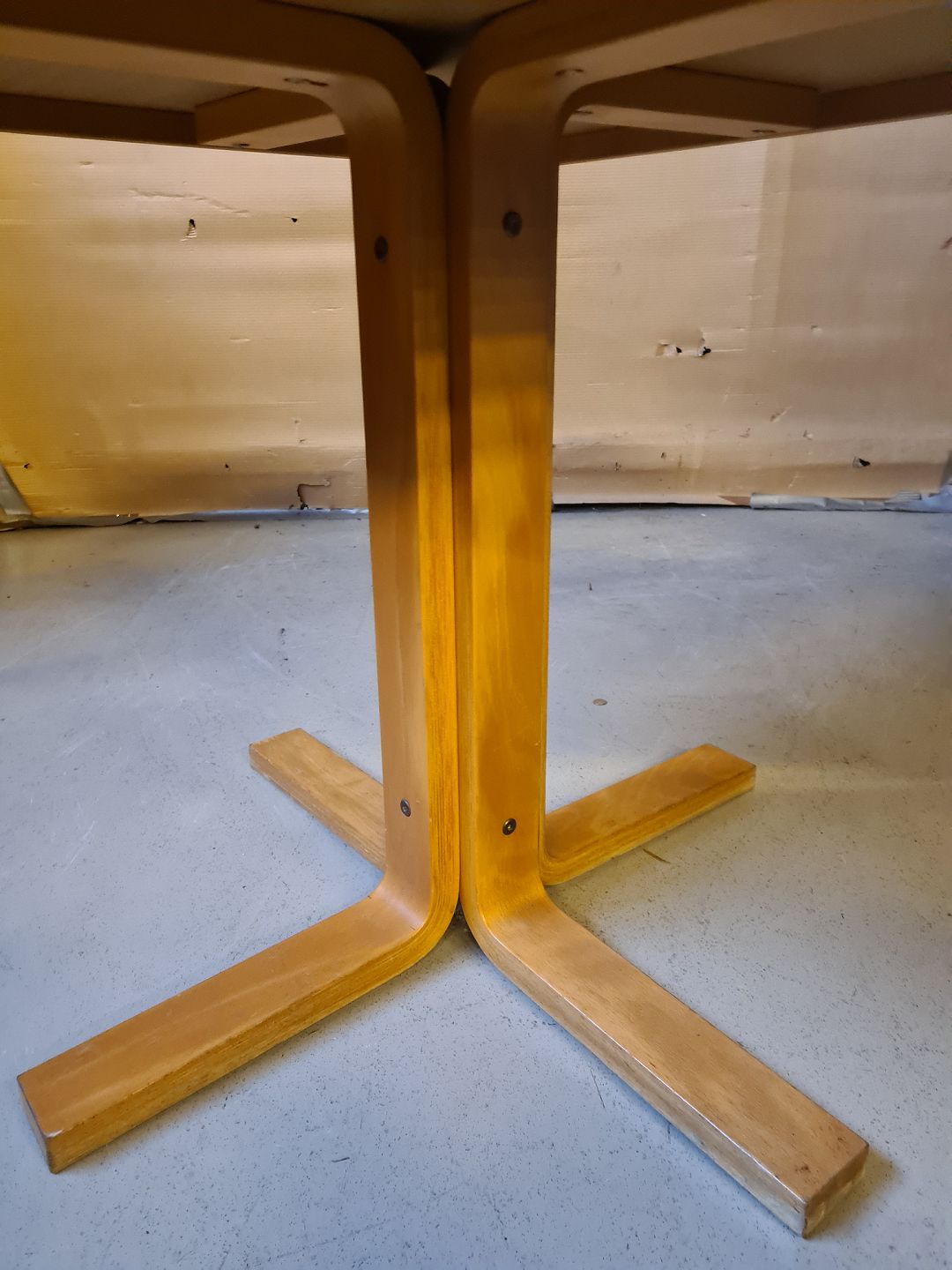 Bord i bøgetræ med linoleums indlæg, fra 1980erne.