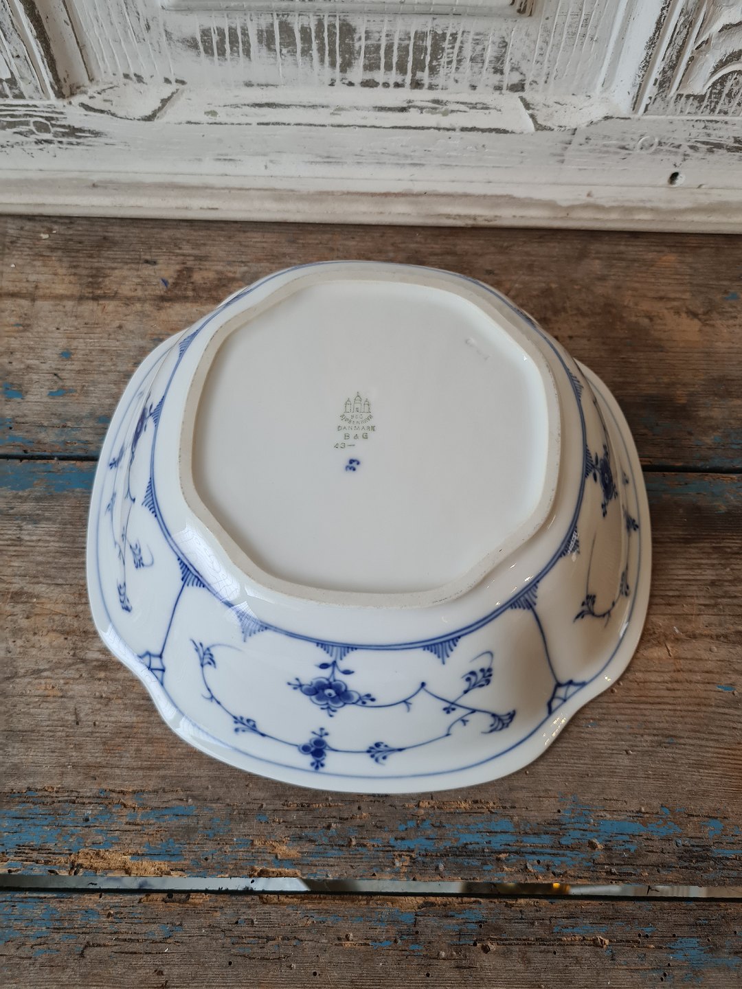 Text zugänglich auf Dänische: B&G Blåmalet stor firkantet skål no. 43 - 313