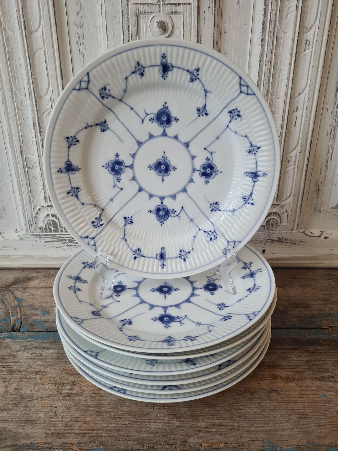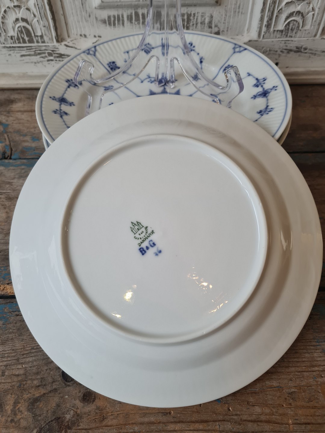 B&G Blåmalet riflet middagstallerken 24,5 cm.
