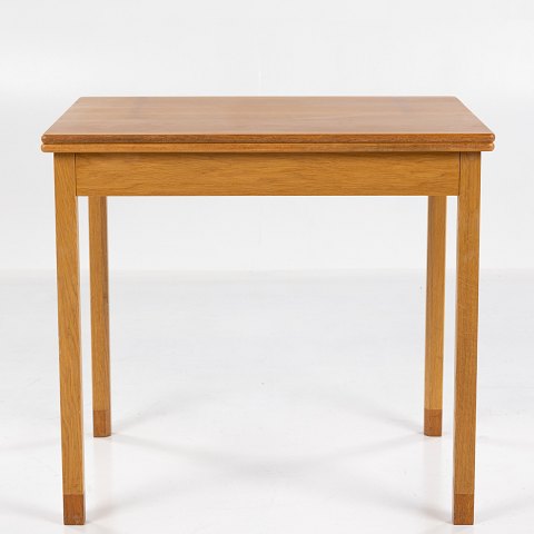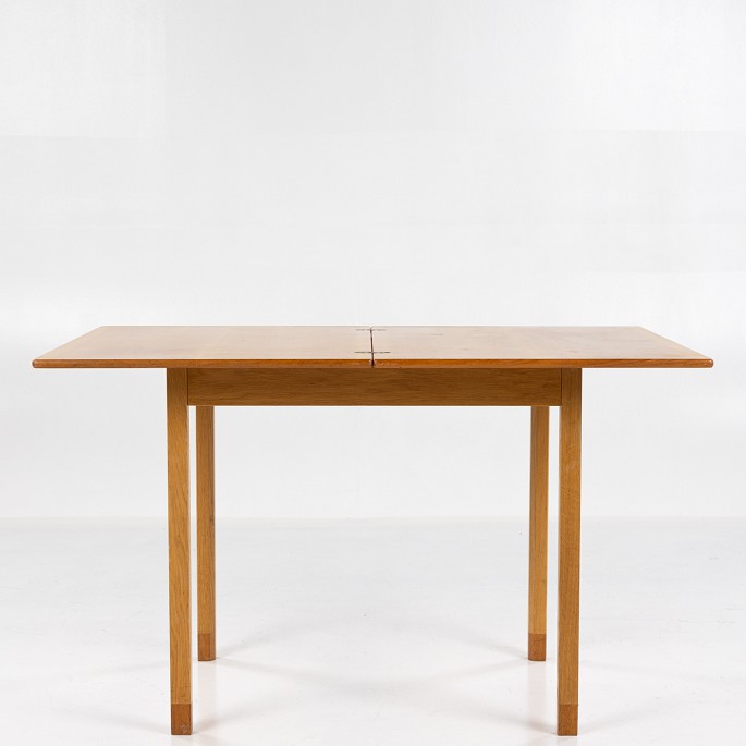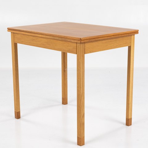 Game table in mahogany and oak, with brass hinges and foldable top. Fully extended the table measures 120 cm in length.