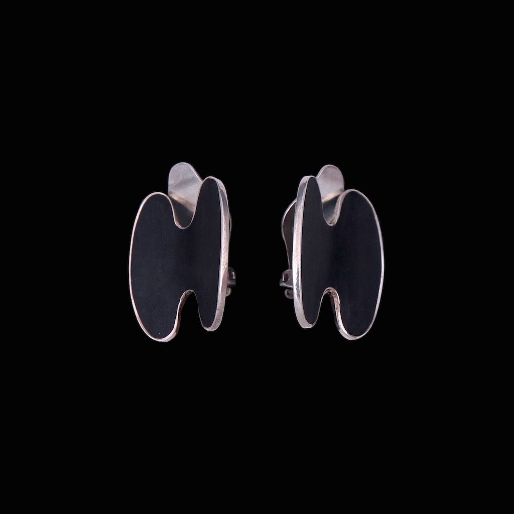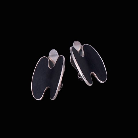 A. Dragsted. Øreklips i sterlingsølv med emalje.