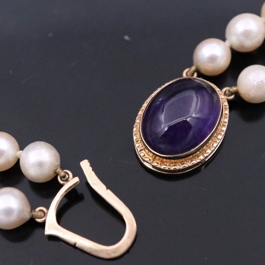 Erik S. Cohn-Pålsson. To-radet perlekæde med lås i 14k guld med ametyst.