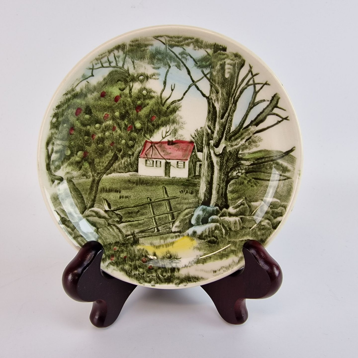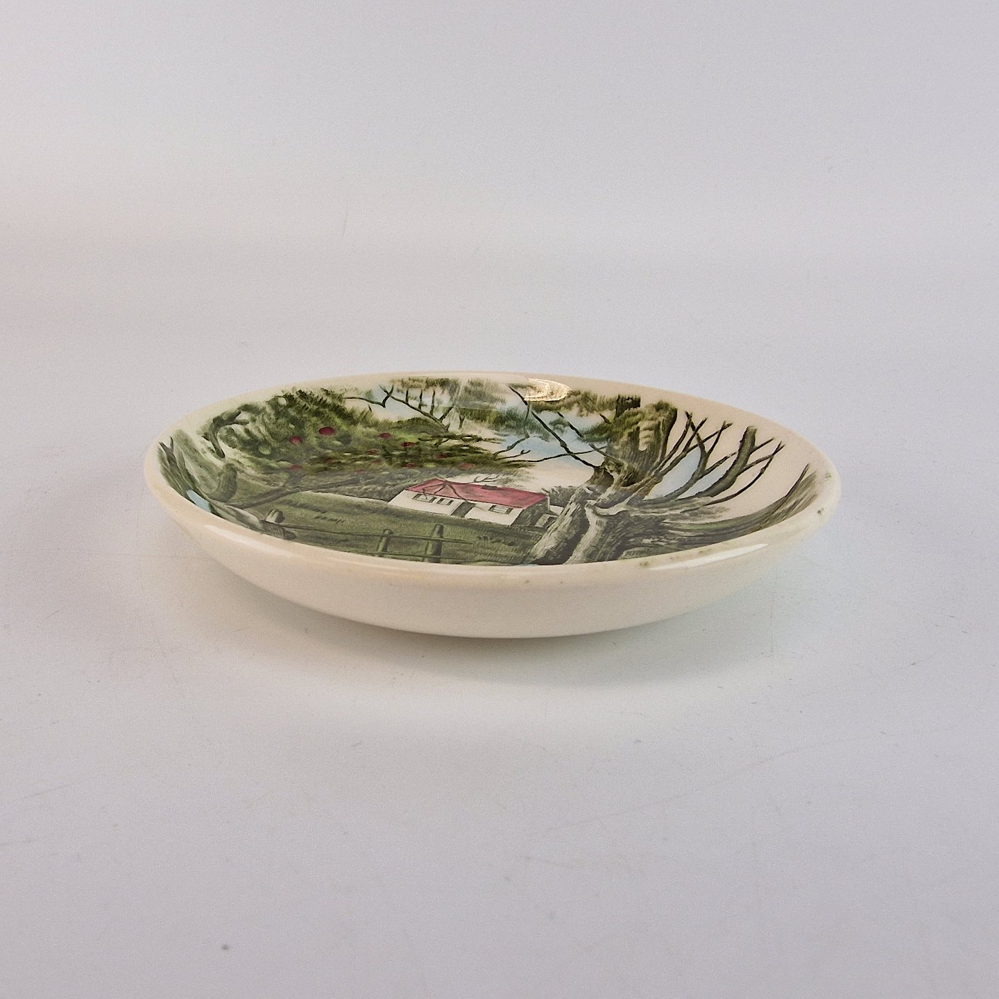 Asiet fra stellet The Friendly Village. Motiv af æbletræ og hus