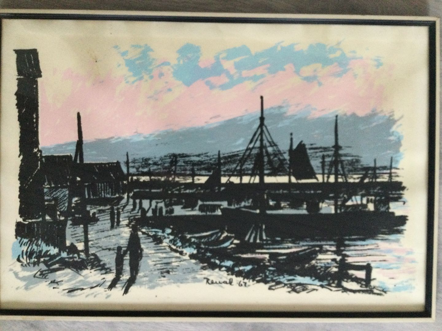 Litografi af Renal Bache - Havneparti 1967.