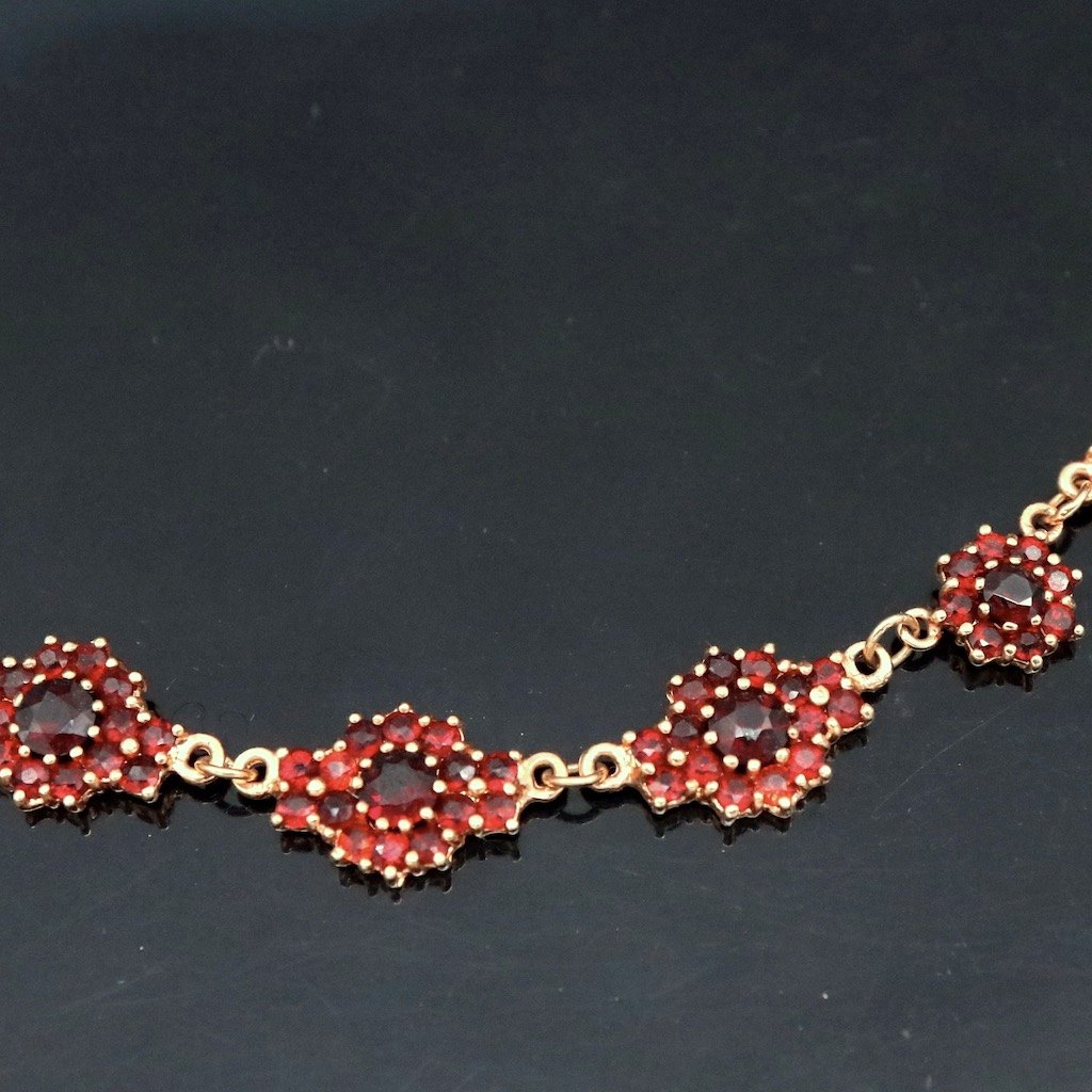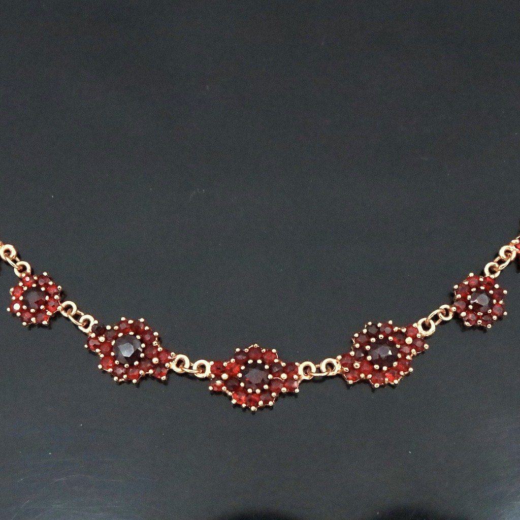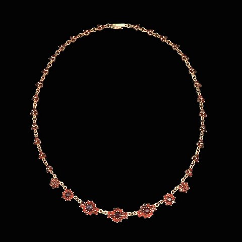 Hermann Siersbøl. Halskæde i 8k guld med granat.