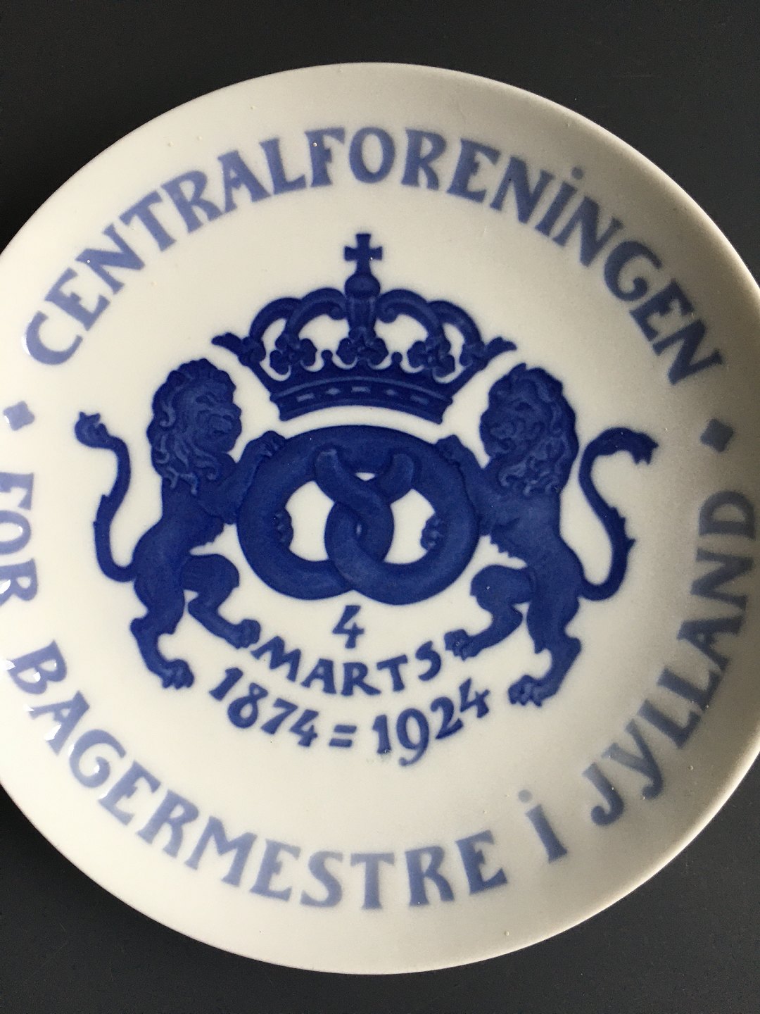 Mindeplatte Bing & Grøndahl 1924 - Centralforeningen for Bagermestre i Jylland.