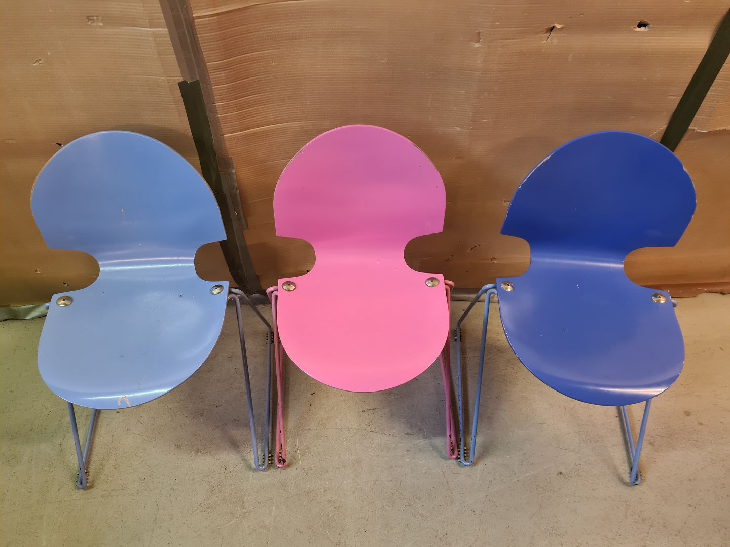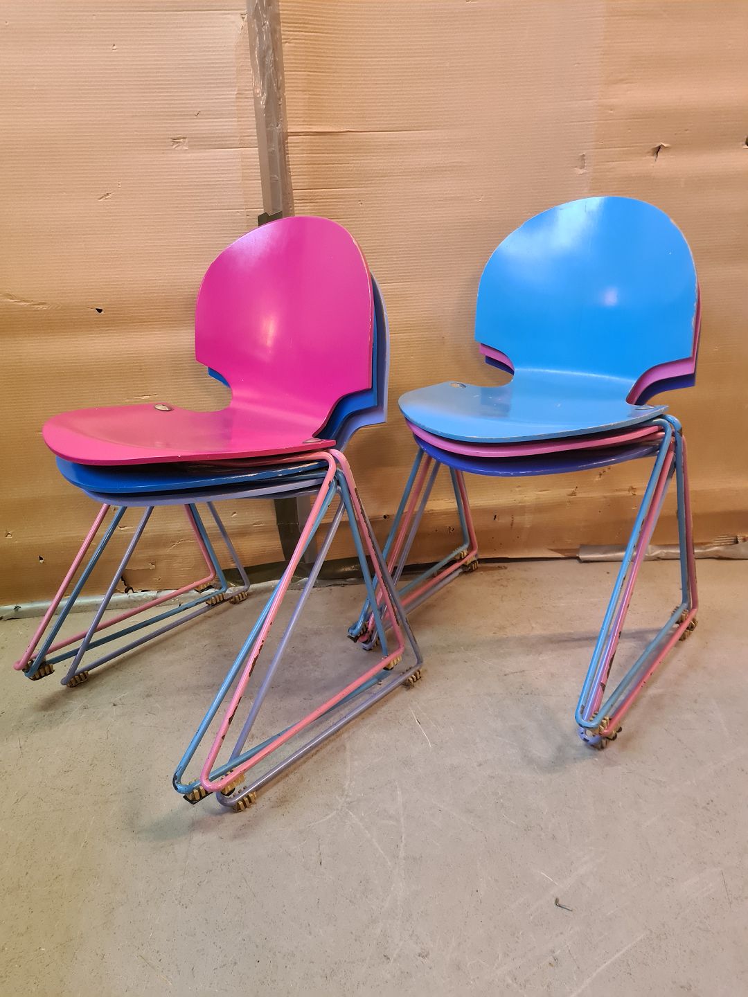 6 Fritz Hansen stole i metal og malet træ, fra 1980erne.