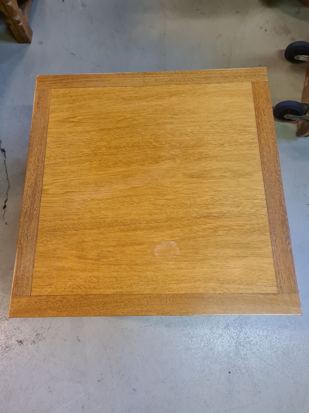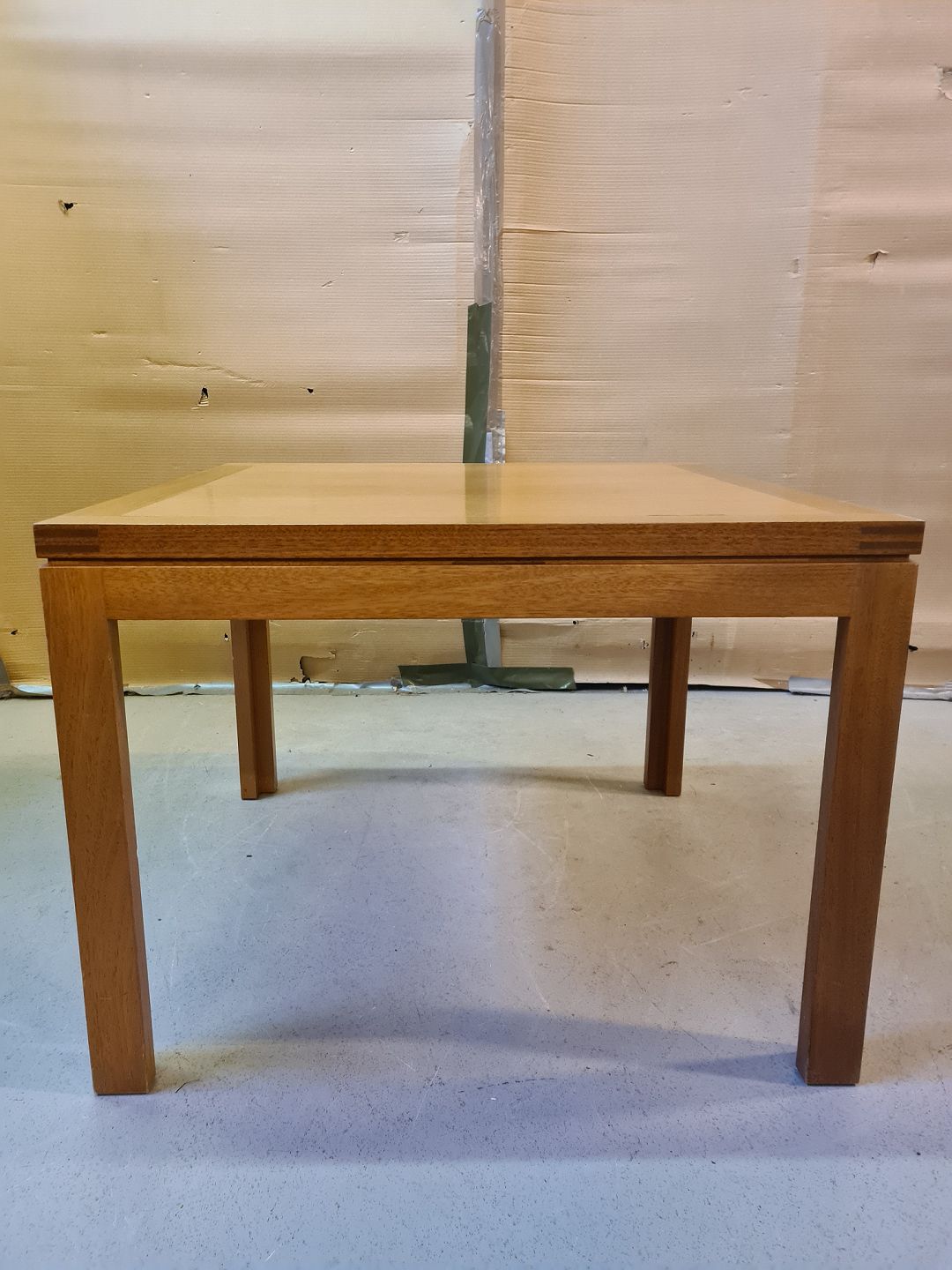 Kvadratisk sofabord i fineret mahogni, fra 1980erne.