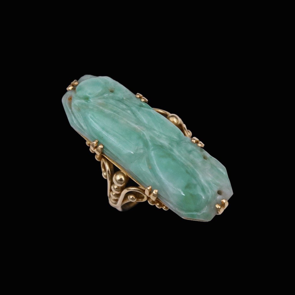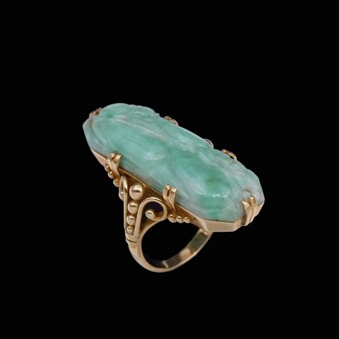 Thorvald Nielsen Meier. Skønvirke Ring i 14k guld med jade.