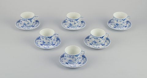 Royal Copenhagen Musselmalet Halvblonde, seks par kaffekopper.
