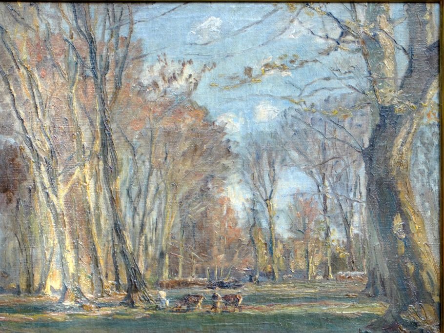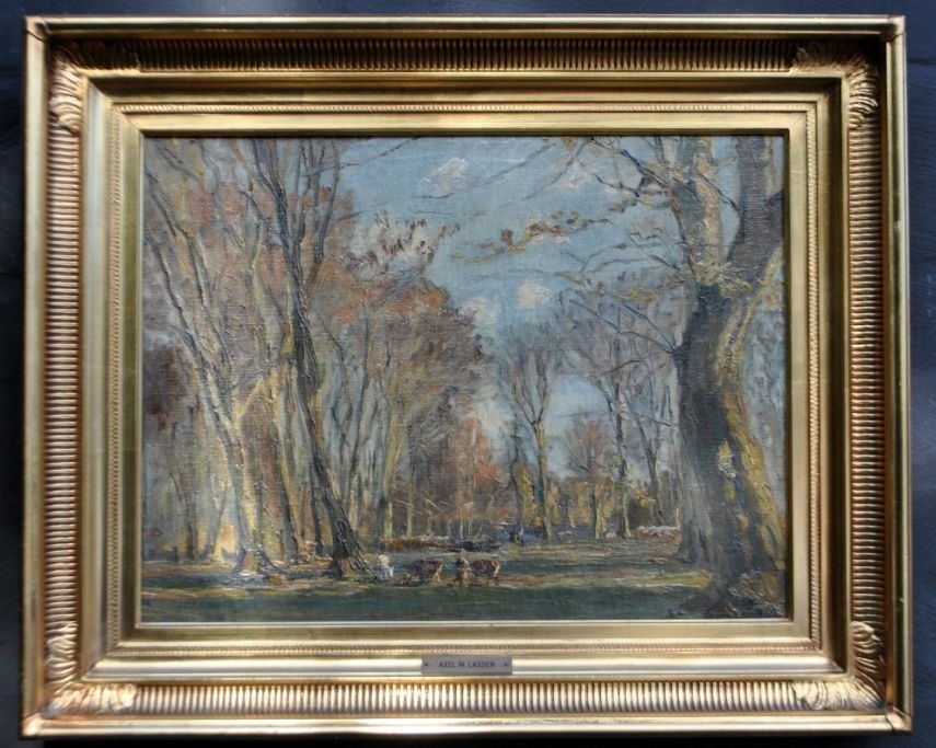 Lassen, Aksel M. (1869 - 1946) Danmark: Fra Dyrehaven, 1927. Olie på lærred. Signeret. 32 x 41 cm.