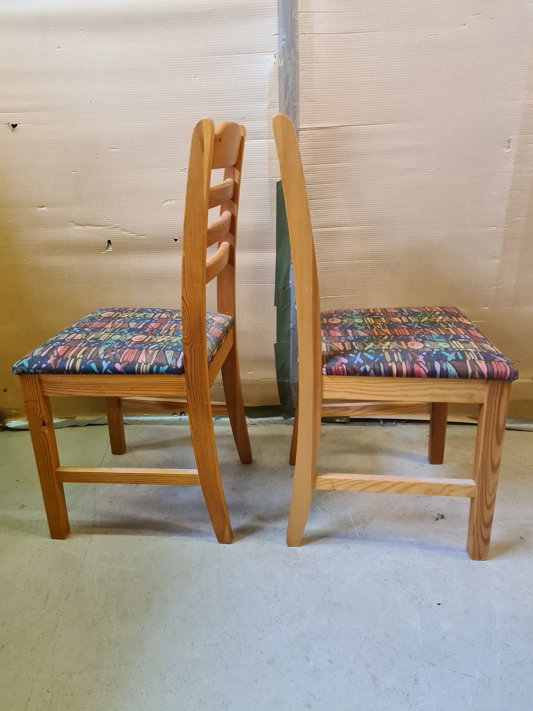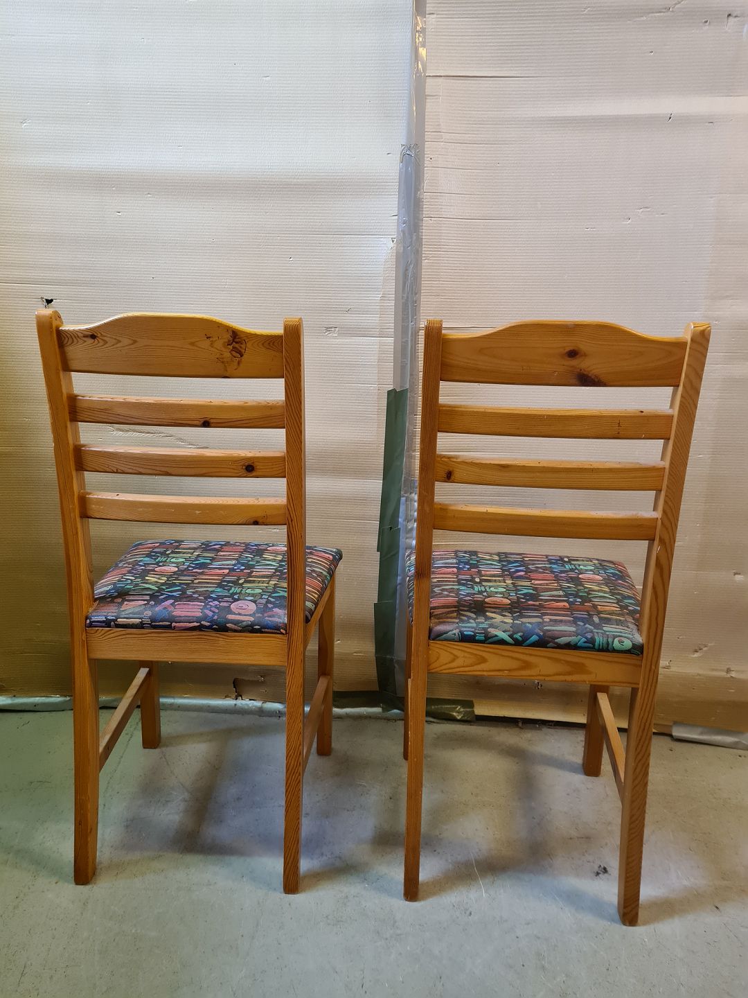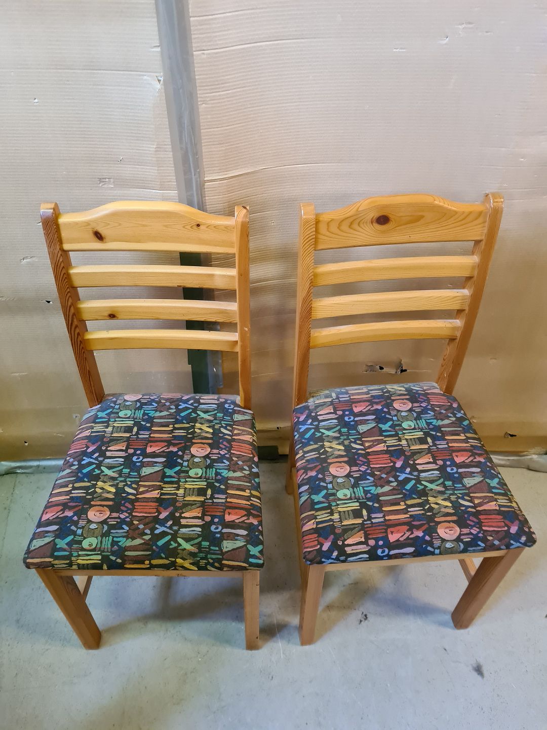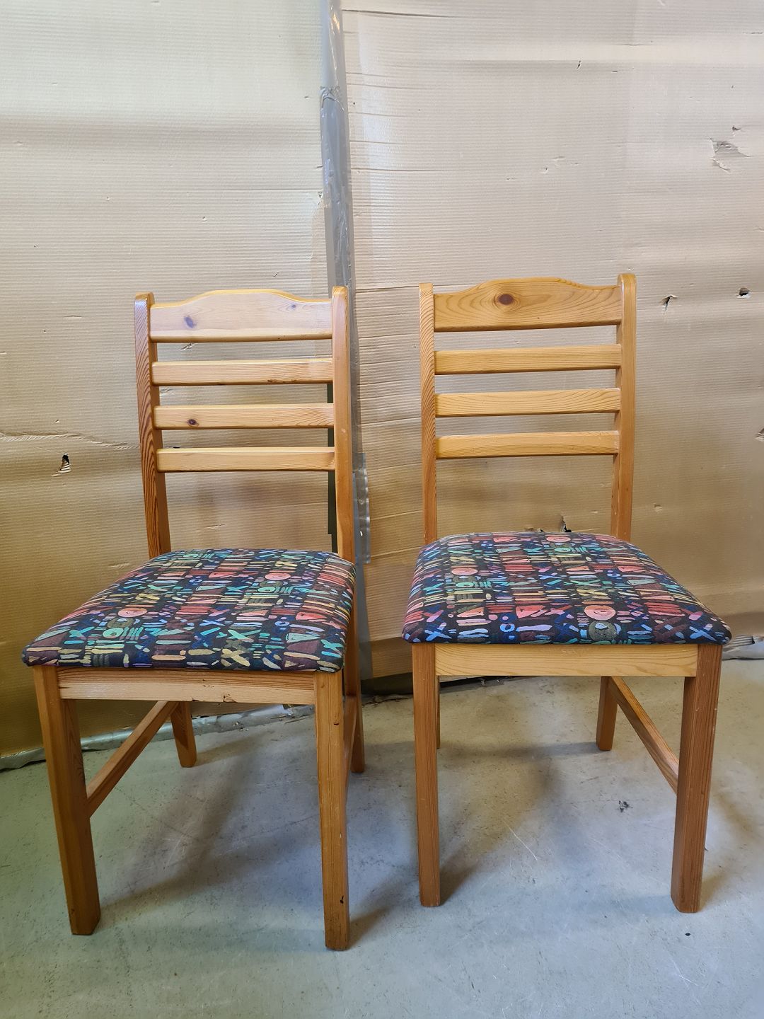 2 Stole i massivt fyrretræ, fra 1980erne.