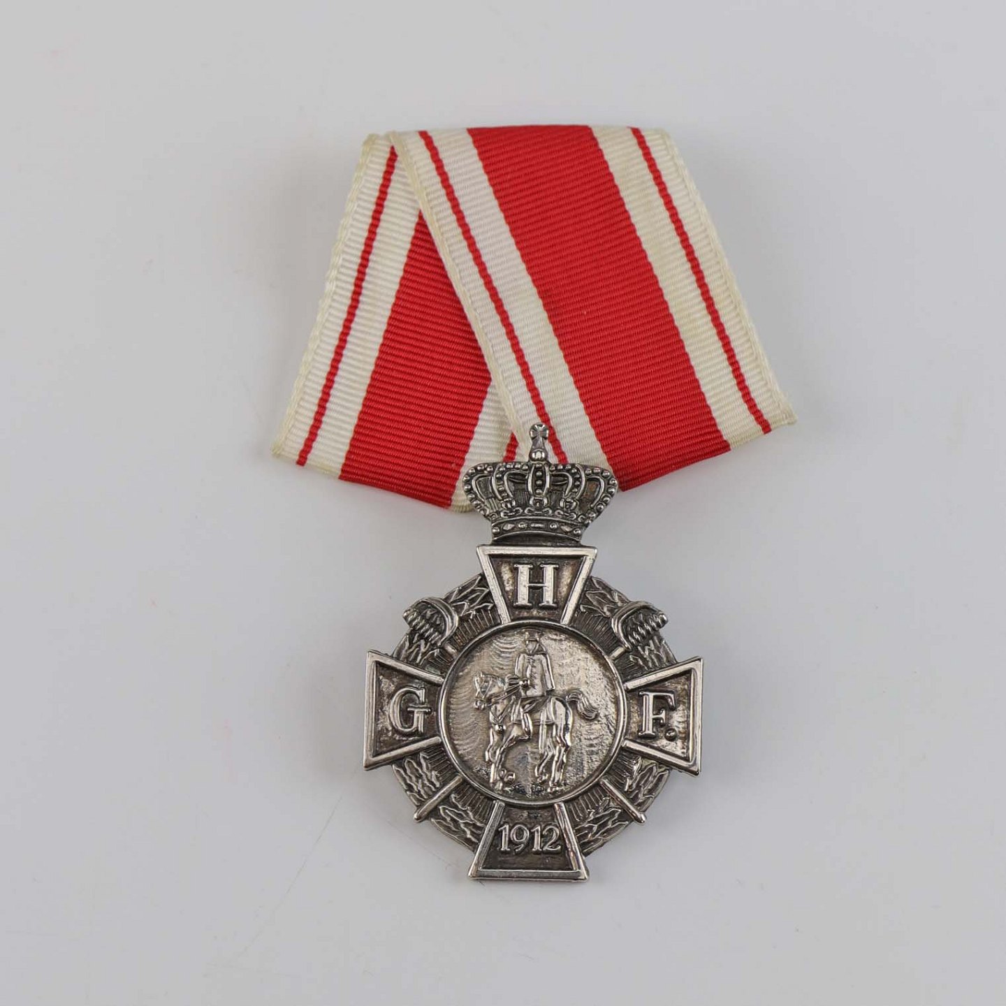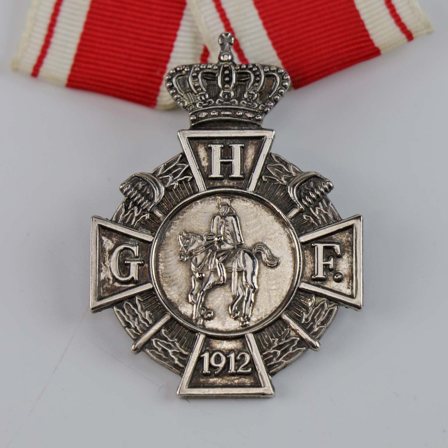 Gardehusarforeningens medlemsmedalje i sølv, med teksten HGF 1912