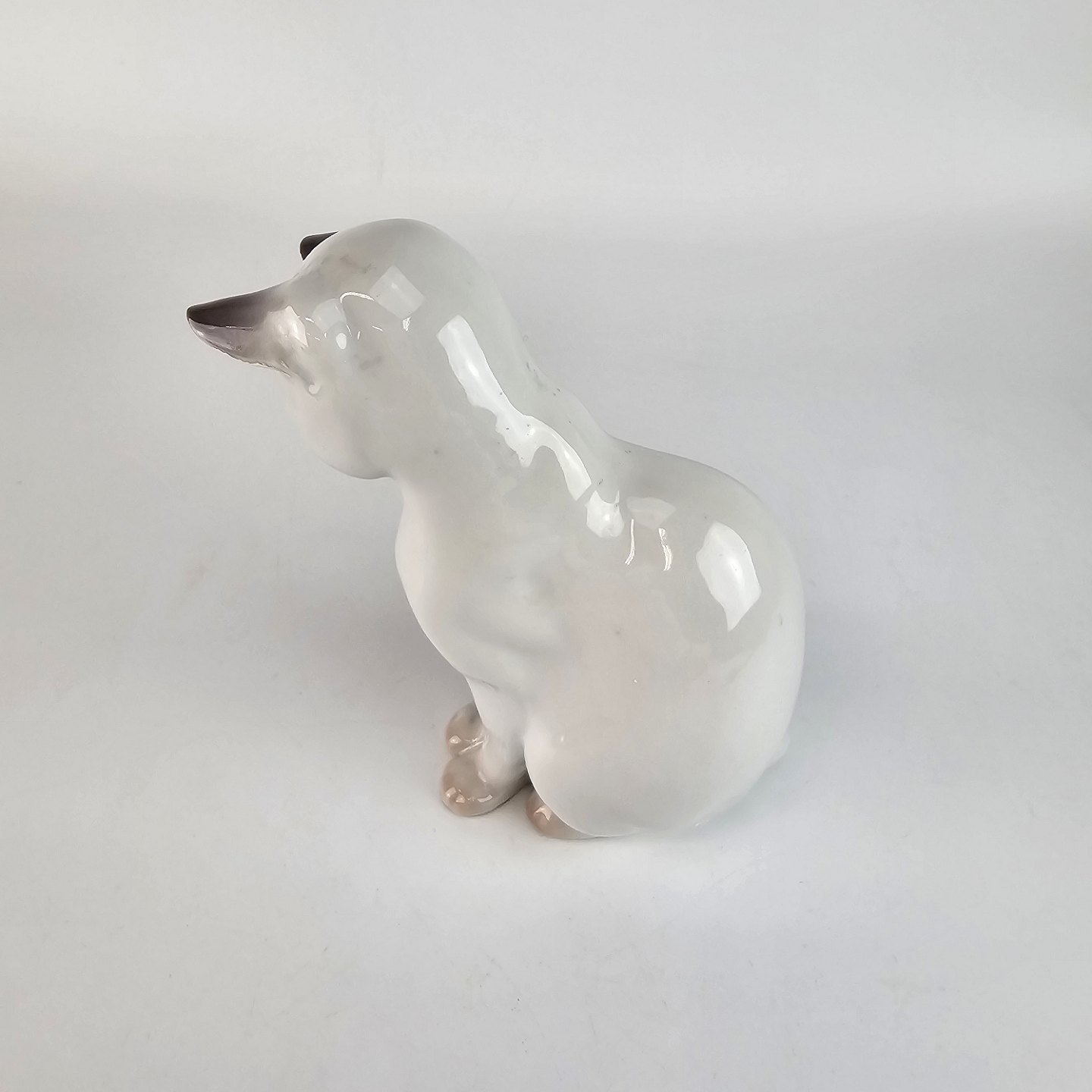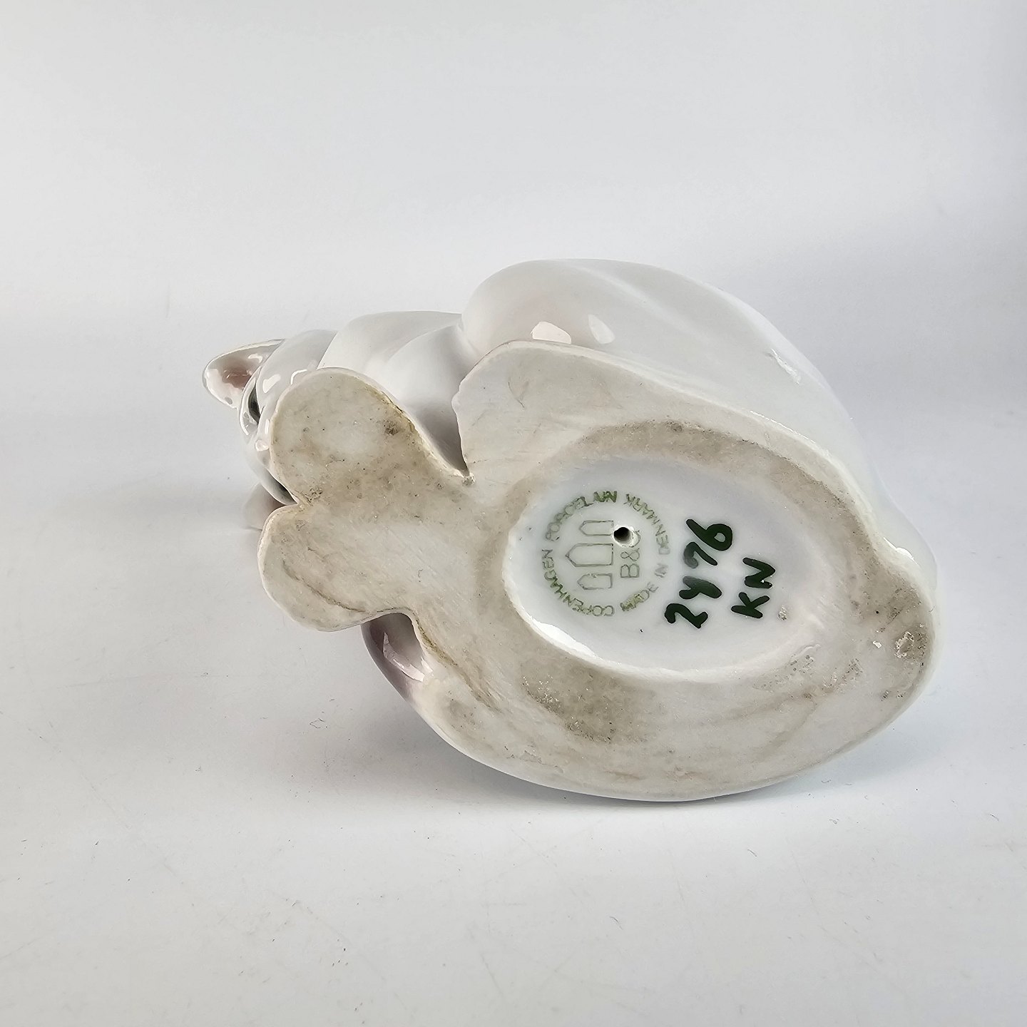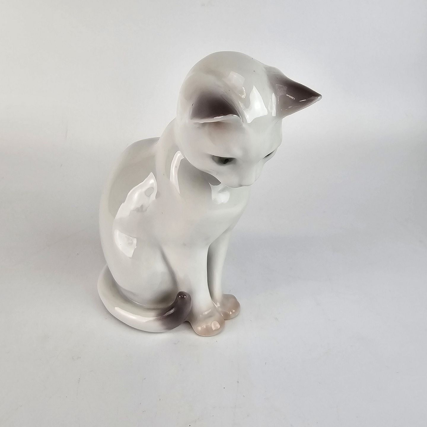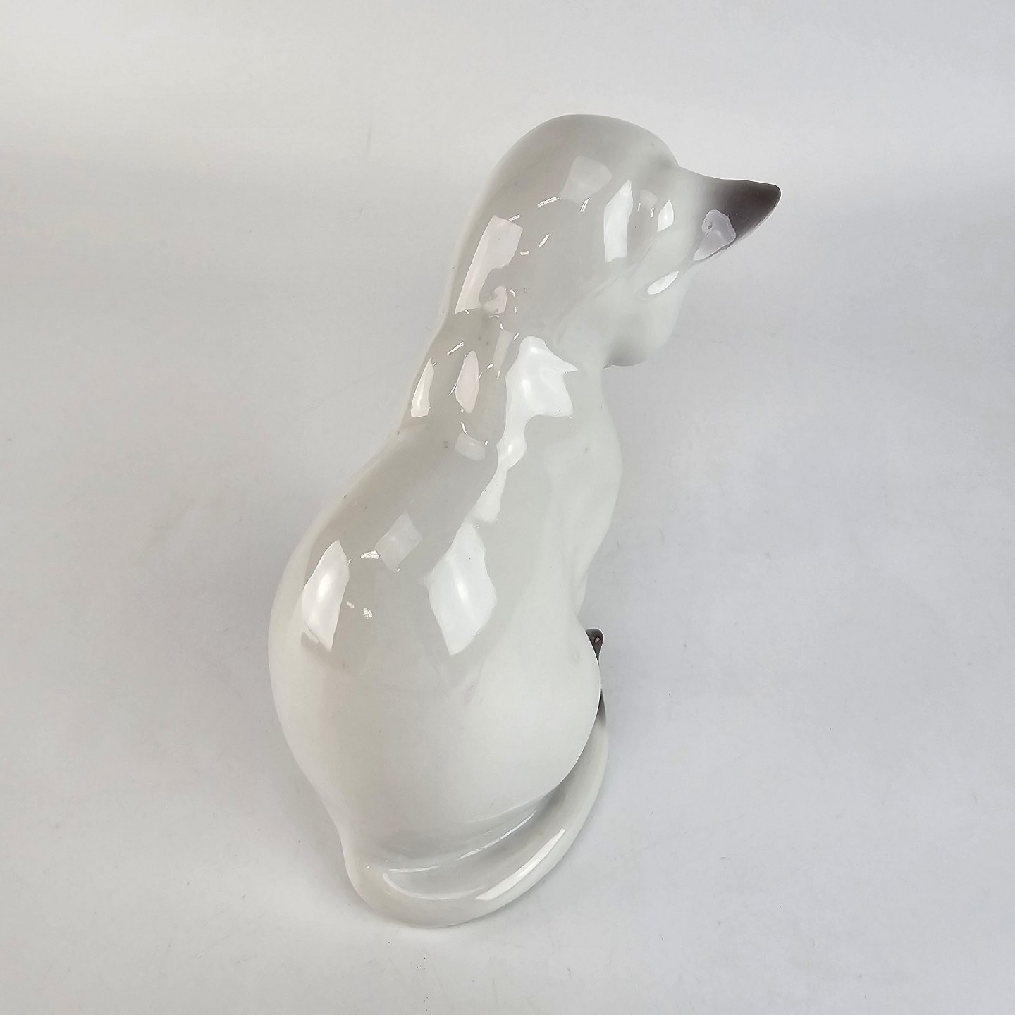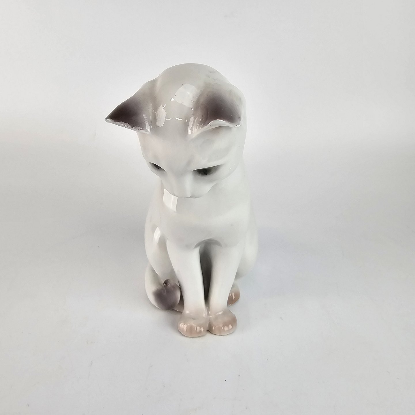 Figur i porcelæn med motiv af siddende hvid kat med grønne øjne nr. 2476