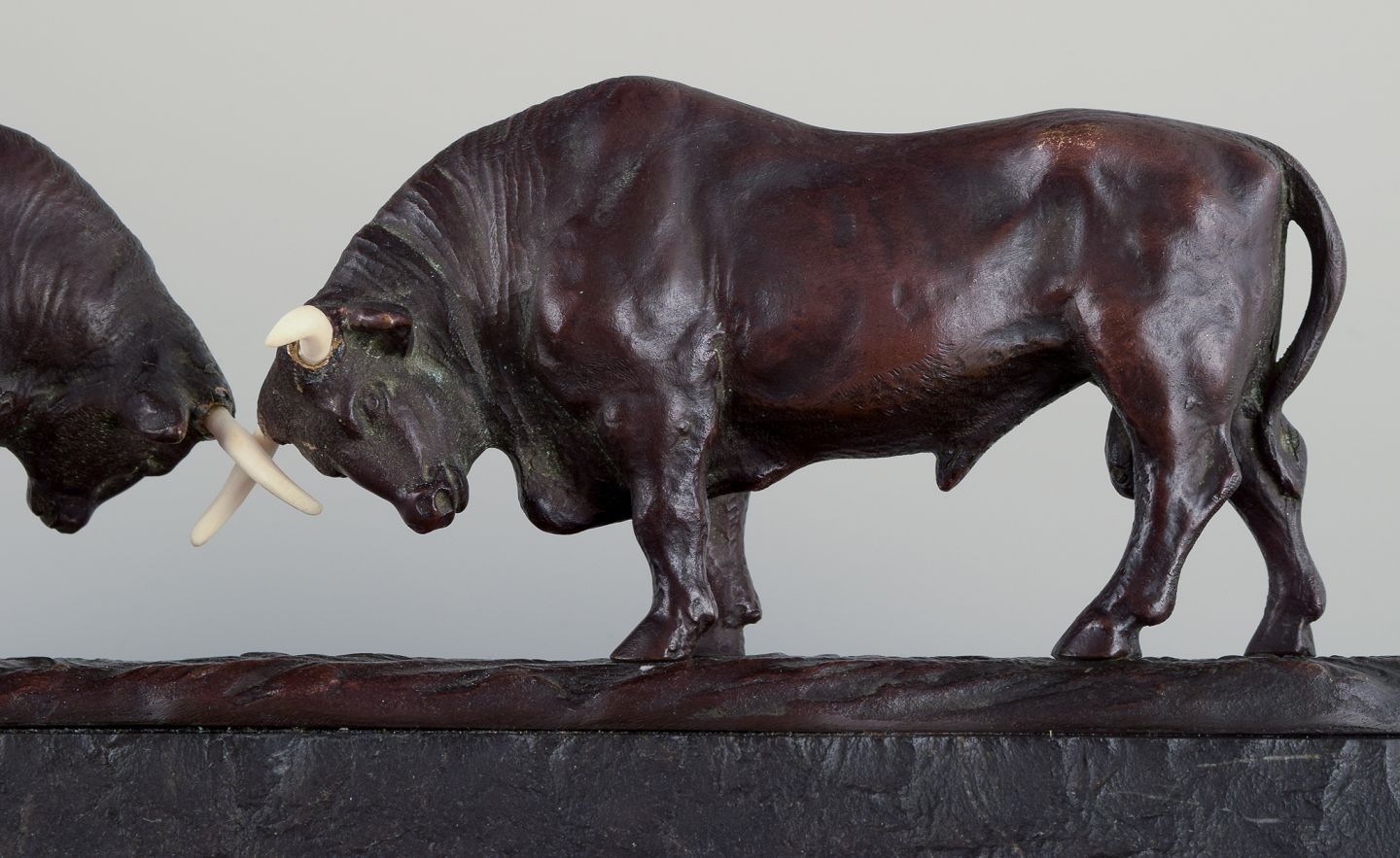Art Deco skulptur i patineret bronze på sort marmorsokkel.