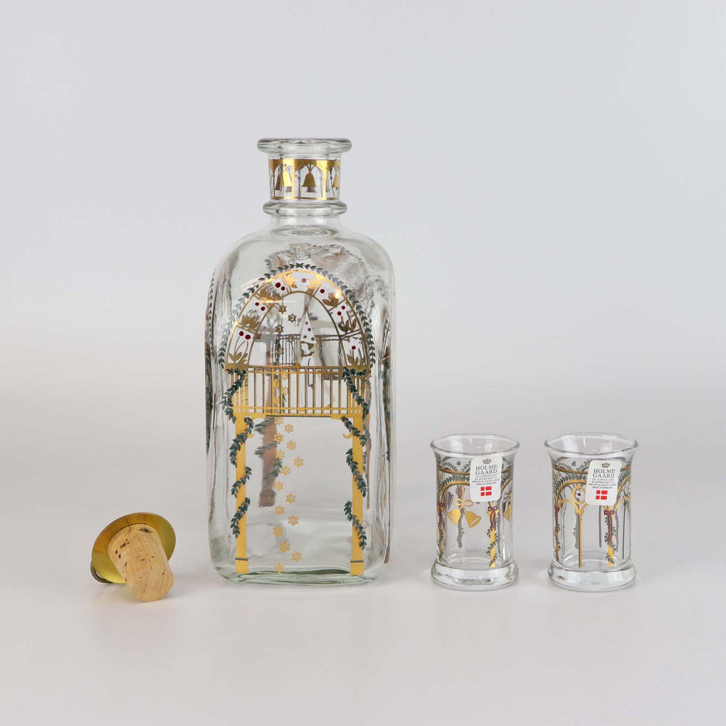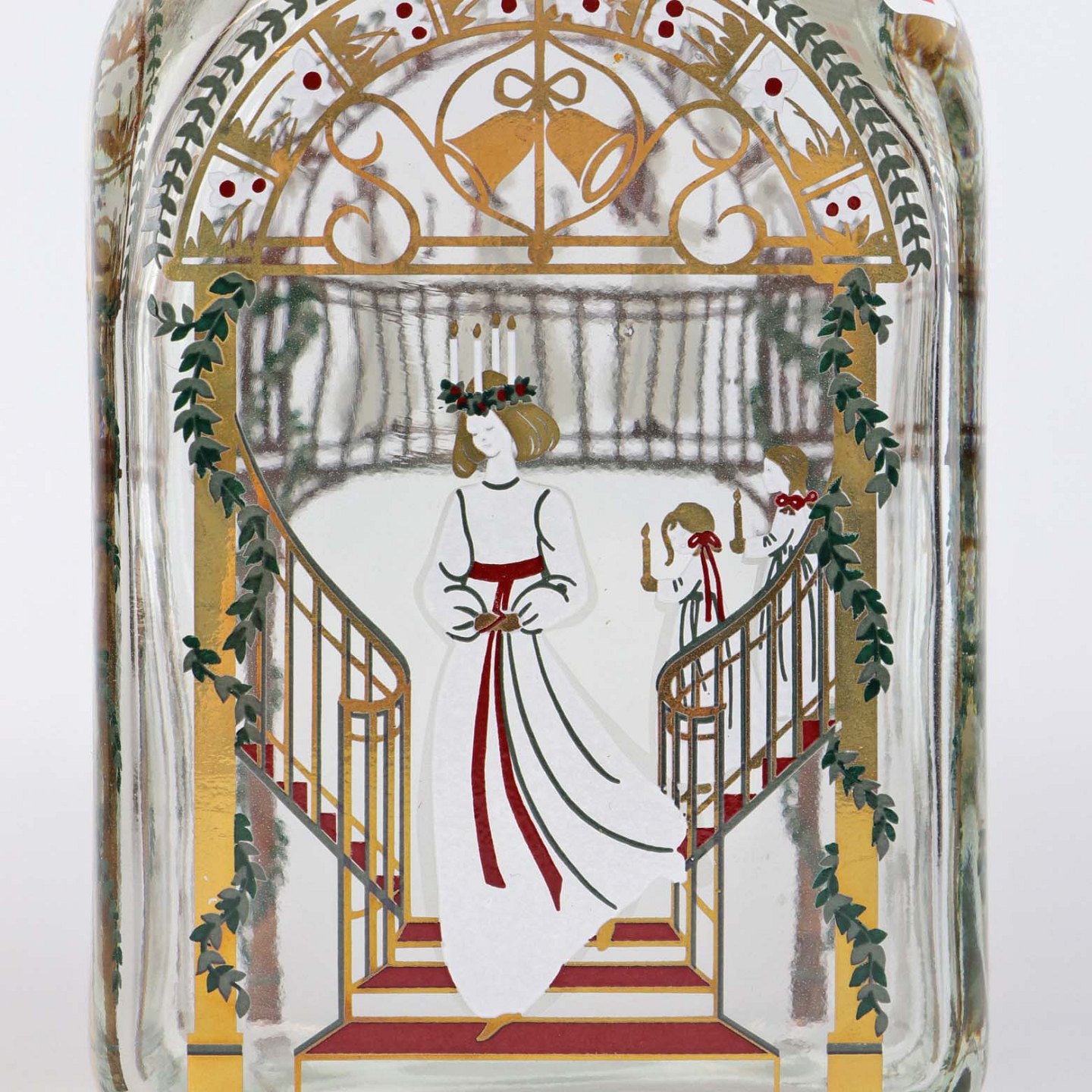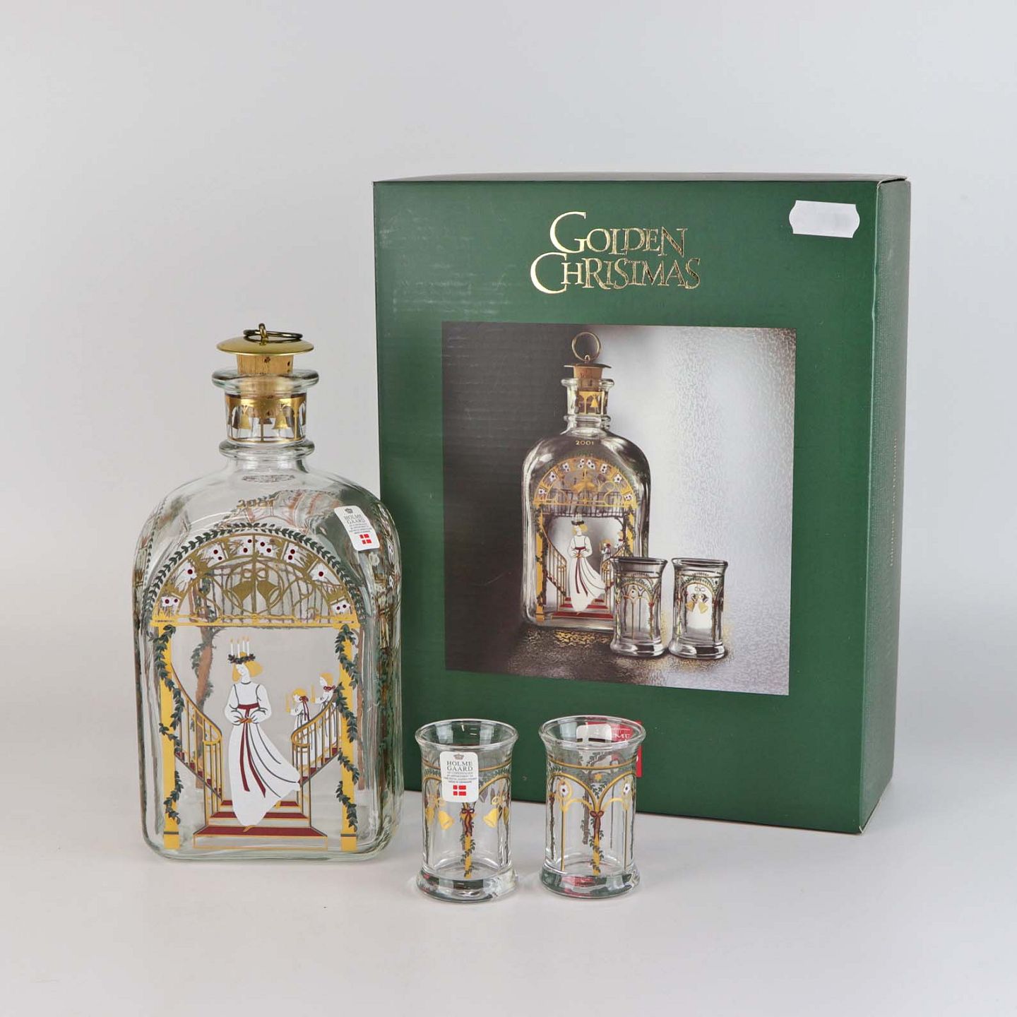Dramflaske i original æske med to små glas. Sættet er fra år 2001 med motiv af Santa Lucia