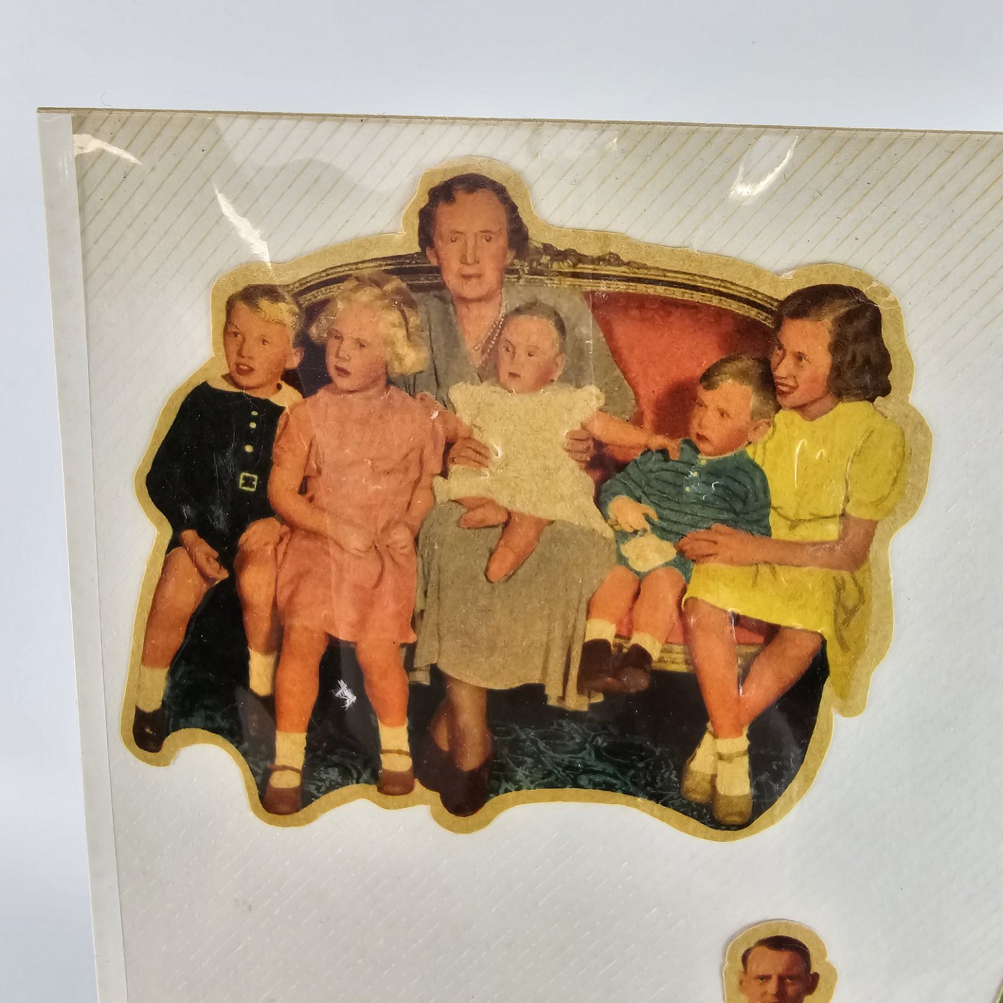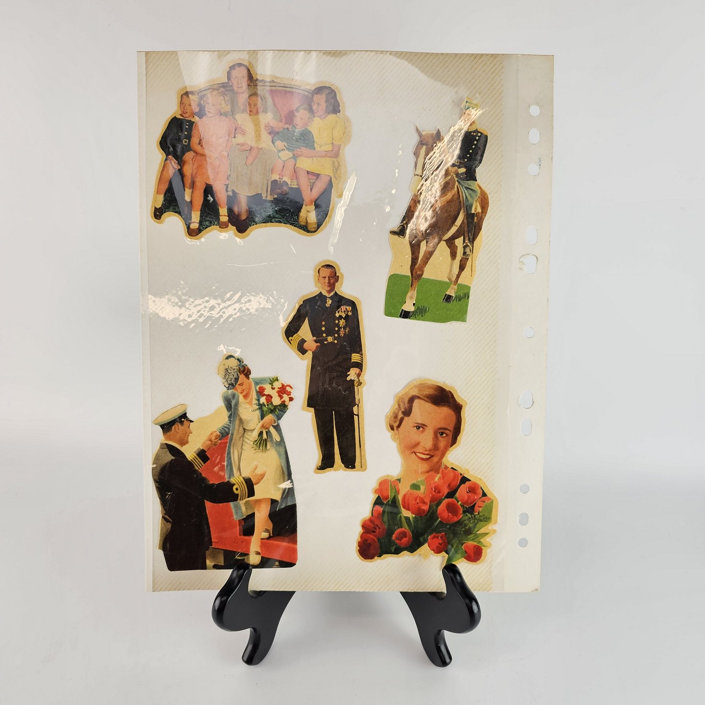 Tre ark glansbilleder af Kong Frederik, Christian X, Dronning Ingrid og Prinsesserne Margrethe, Benedikte og Anne Marie. Alle kan nemt tages ud af mappen.