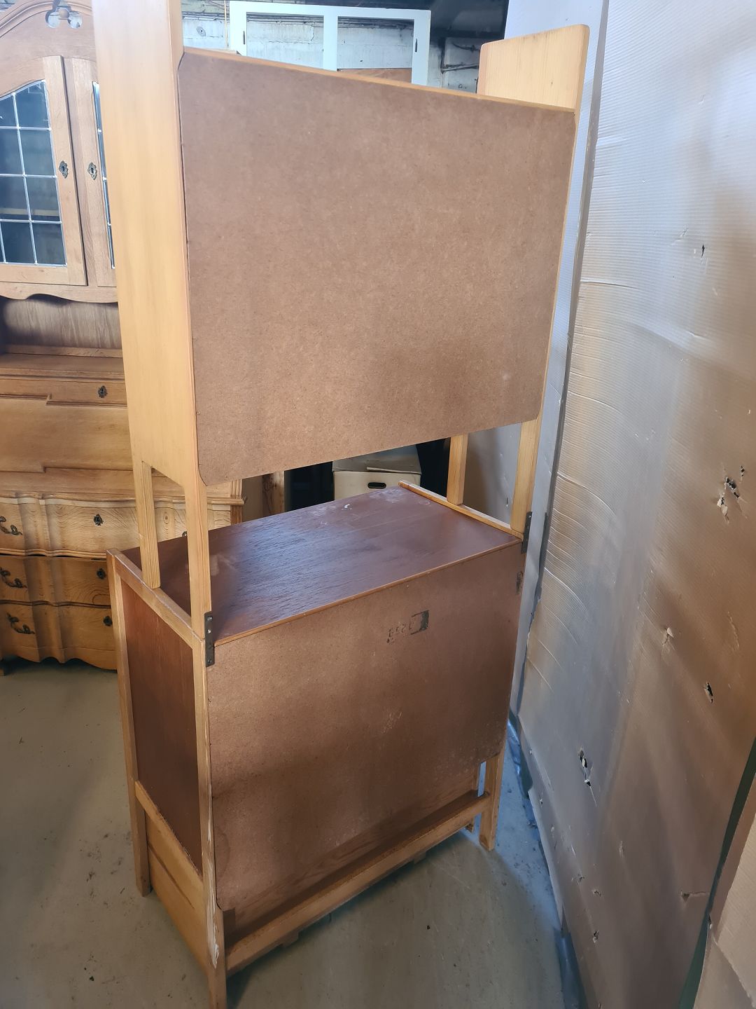 Reolsektion i massivt fyrretræ og fineret teaktræ, fra 1960erne.