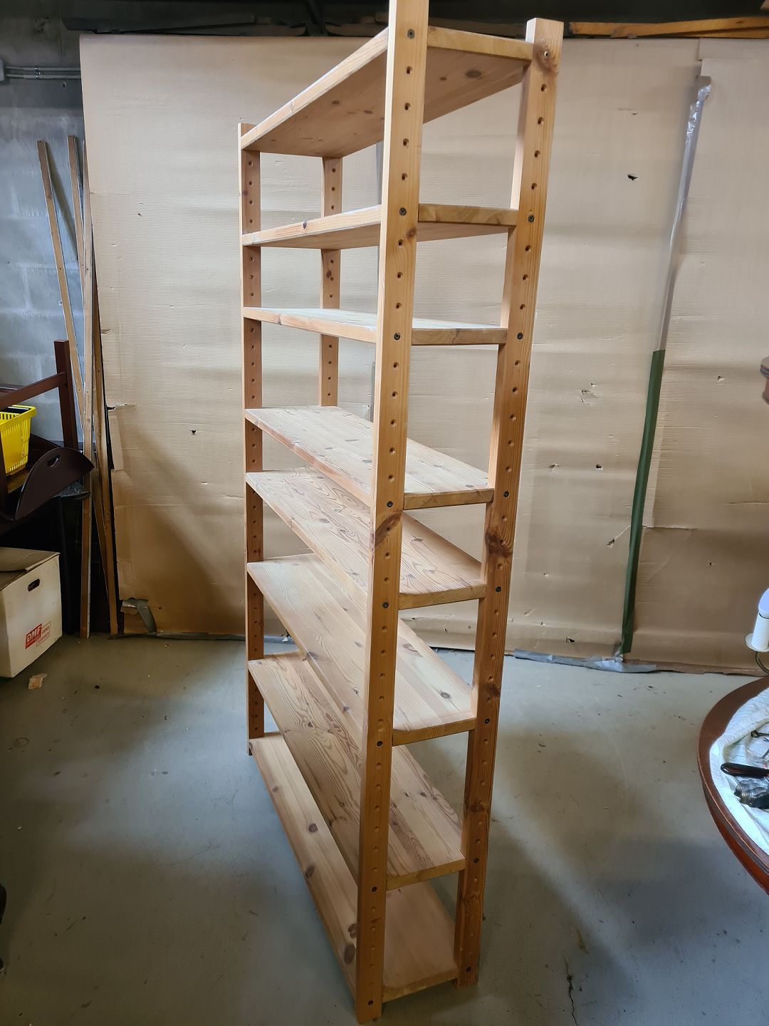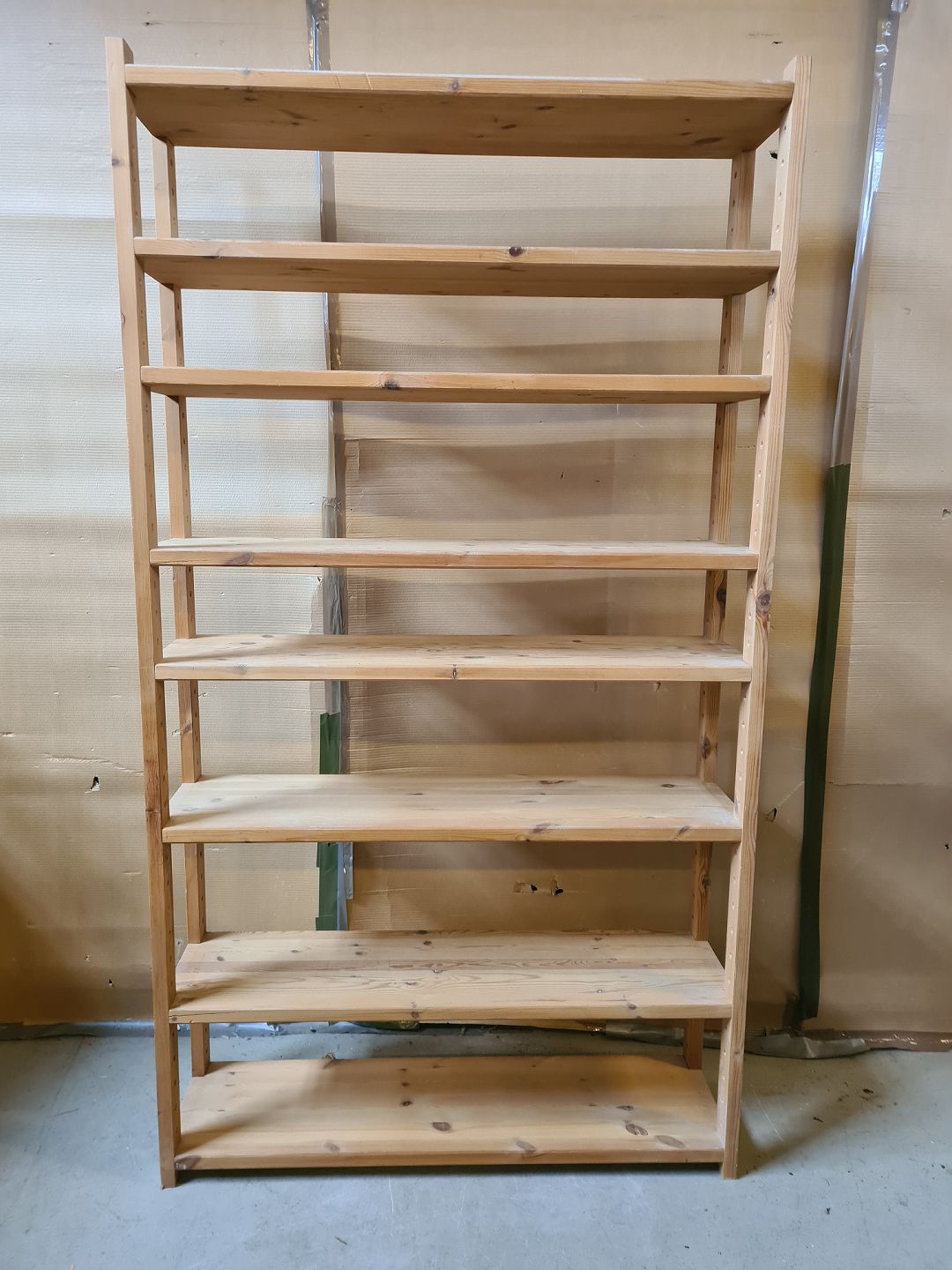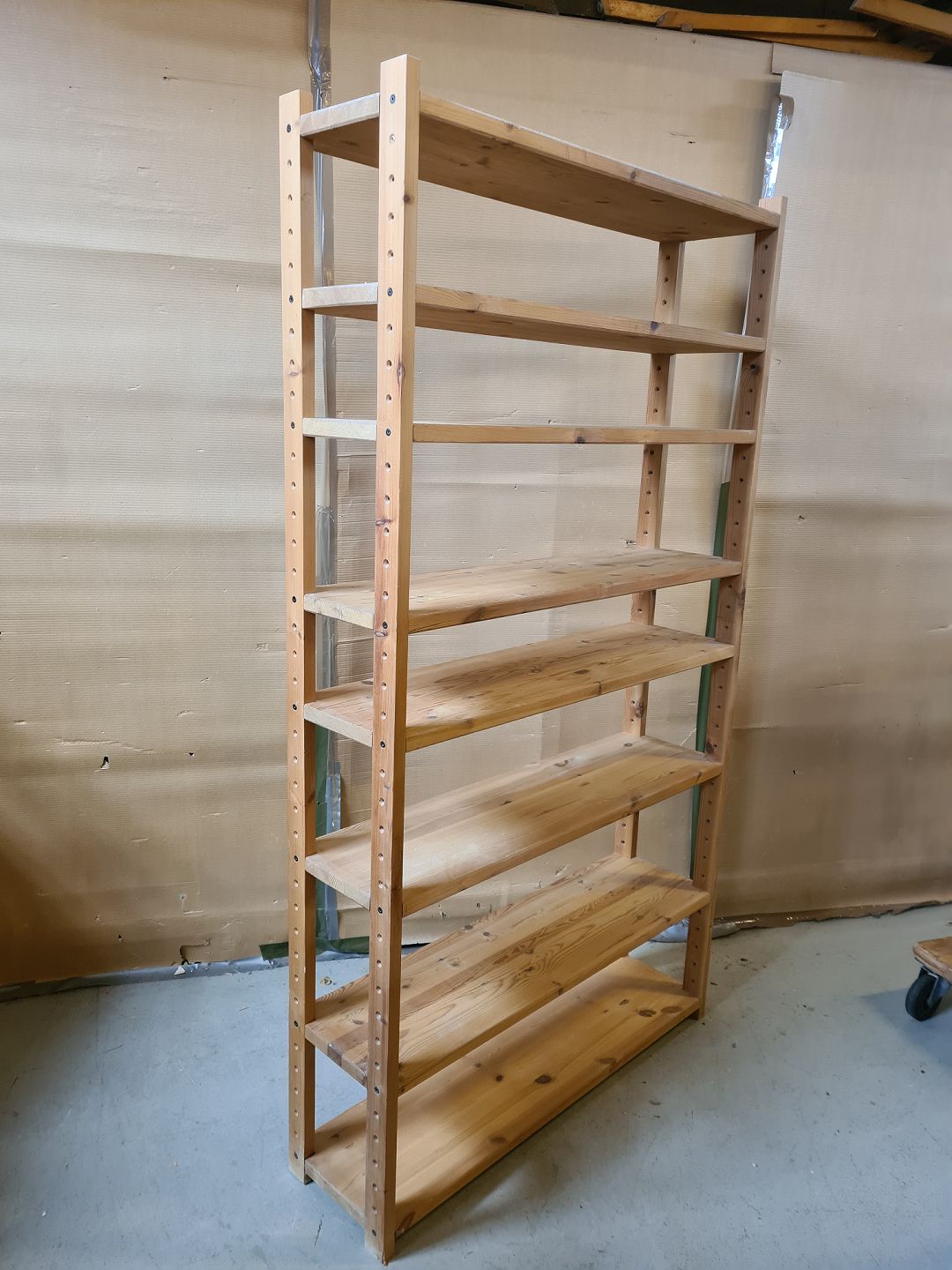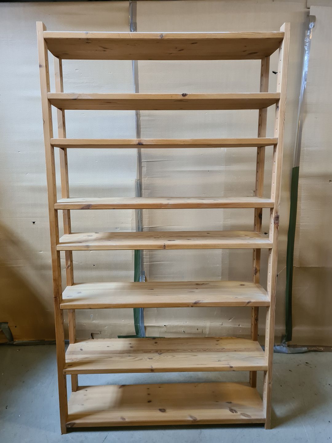 Reol i massivt fyrretræ, fra 1990erne.