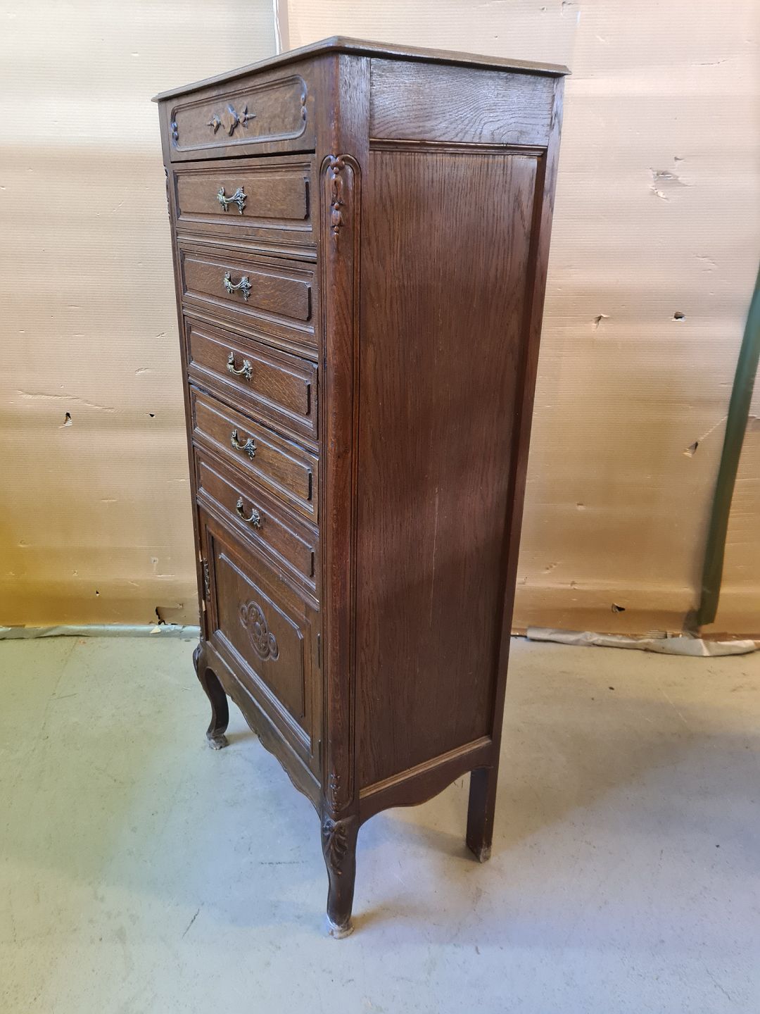 Kommode i bejdset fineret og massivt egetræ, fra 1930erne.
