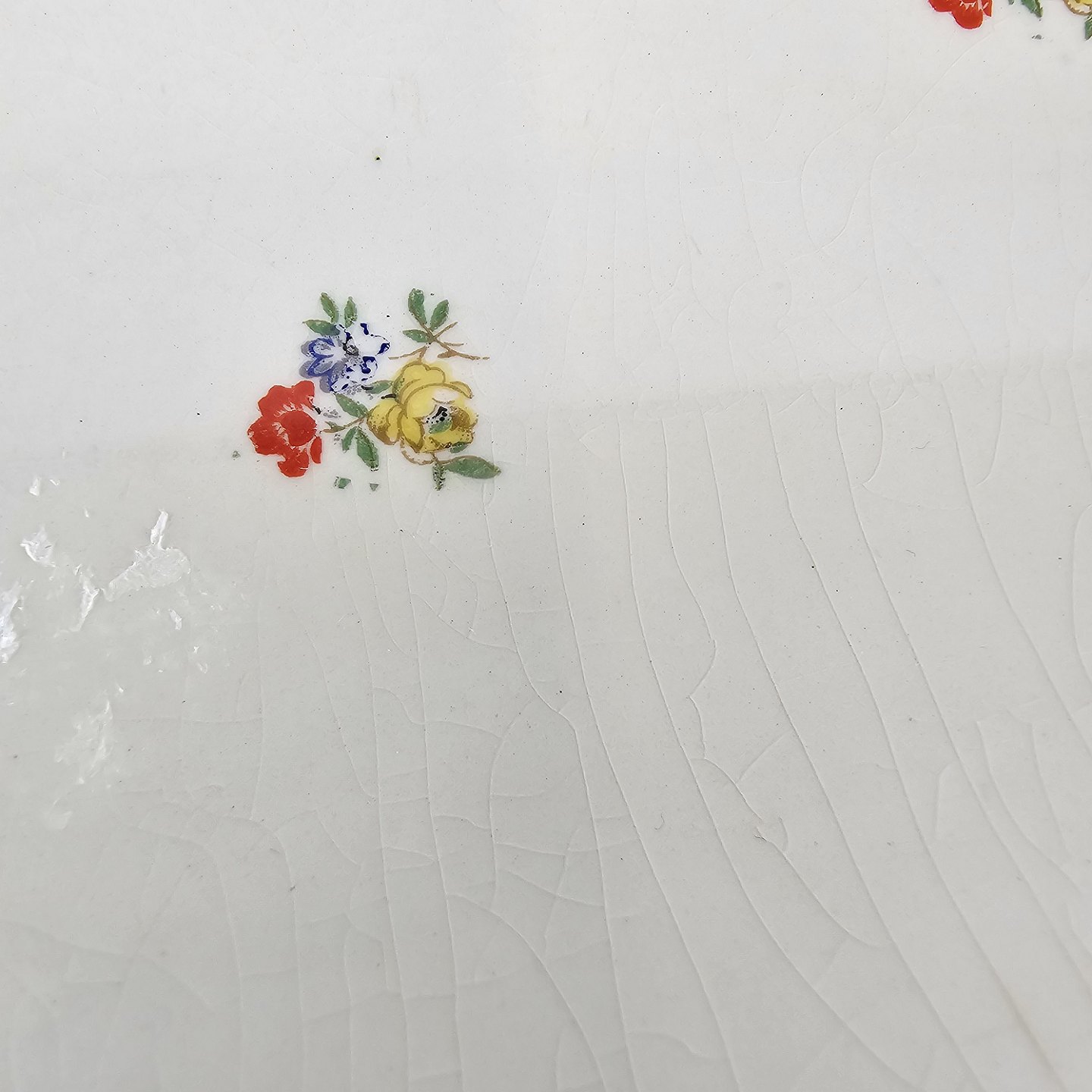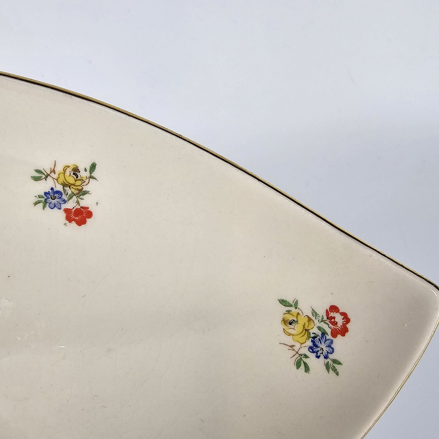 Anna Sofie er hvidt fajance dekoreret med guld kant og små farverige blomster