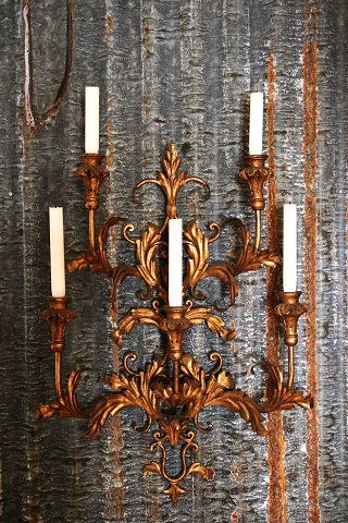 Gammel franske væg lysestage i forgyldt metal og lysholder