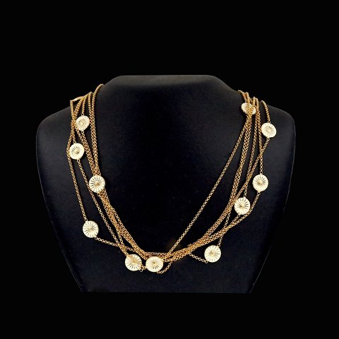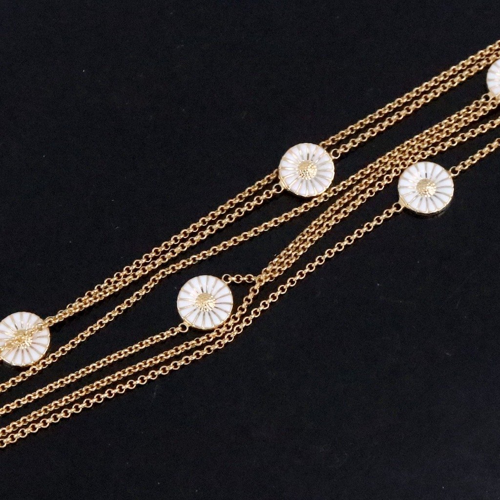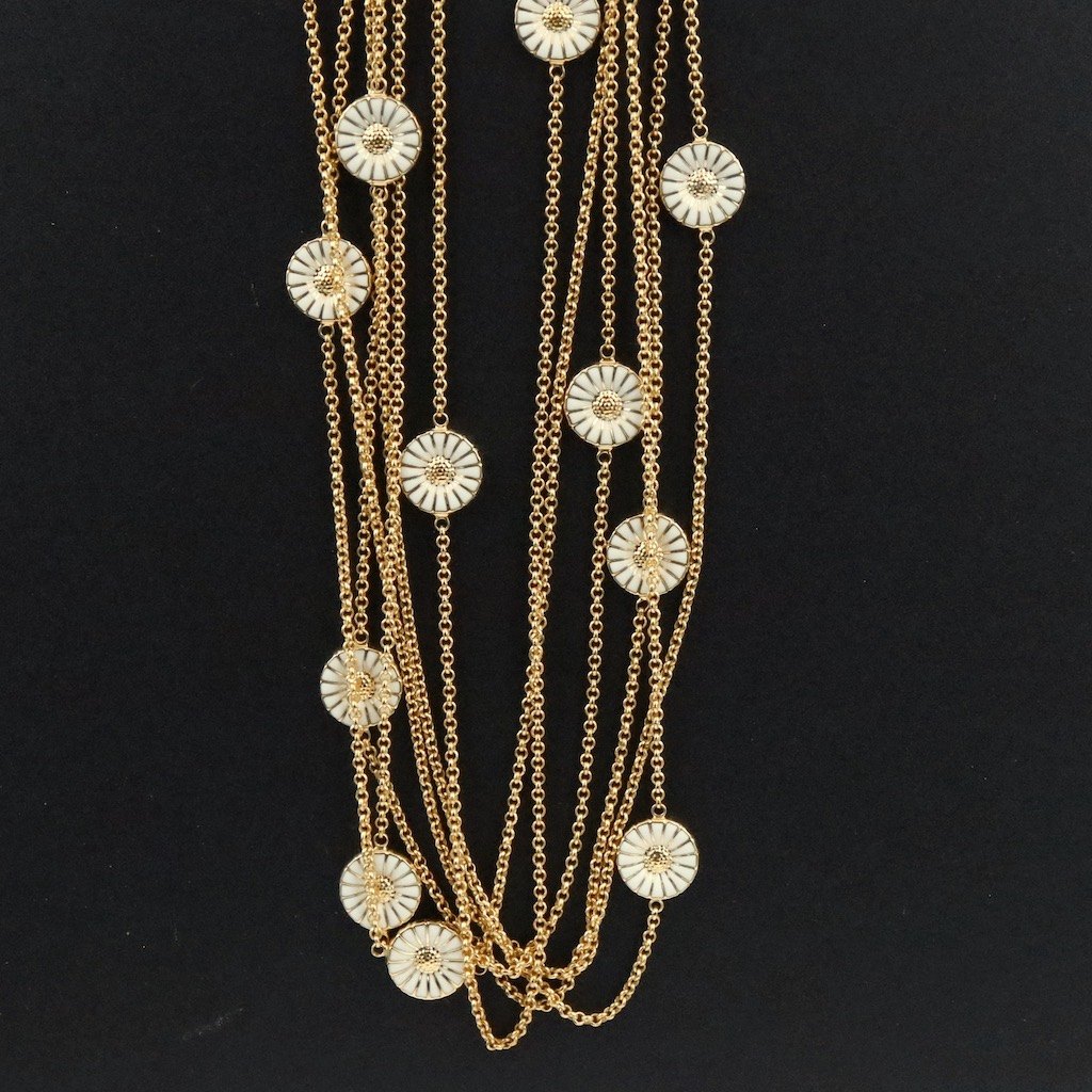 Georg Jensen. Gilded Sterling Silver DAISY Sautoir with white Enamel.