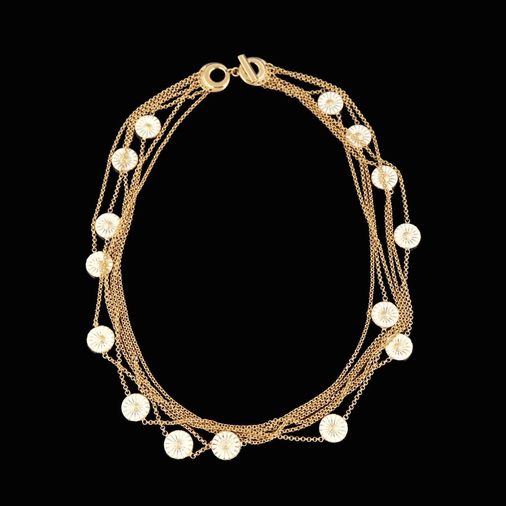 Six-Strand Sautoir with 11mm double-sided daisies.