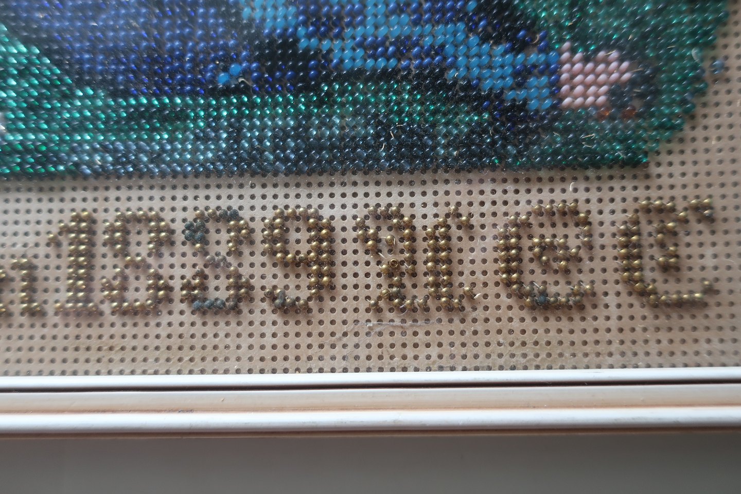 Embroidery made by hand, made with pearls, made on the paper