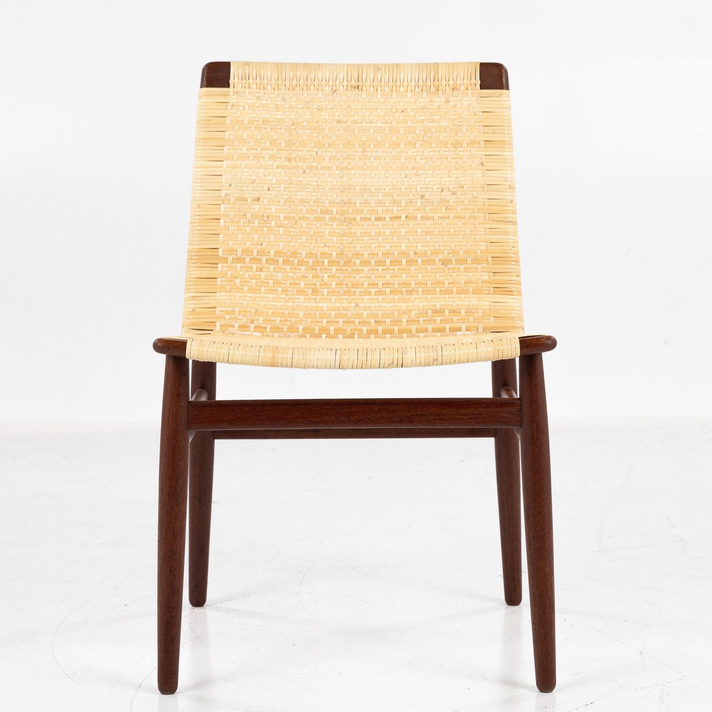 Set of eight rare dining chairs in solid teak with seat and back in new cane. Designed in 1951.