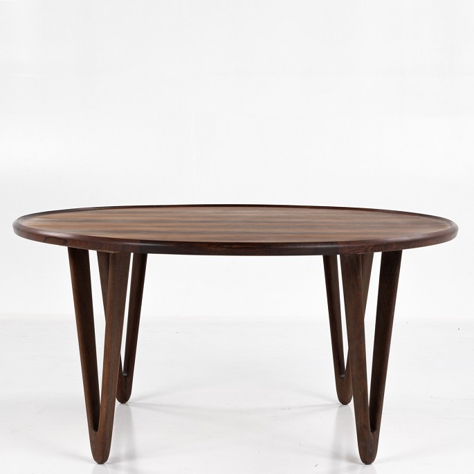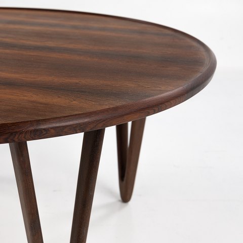 Rundt sofabord i palisander med V-formede ben.