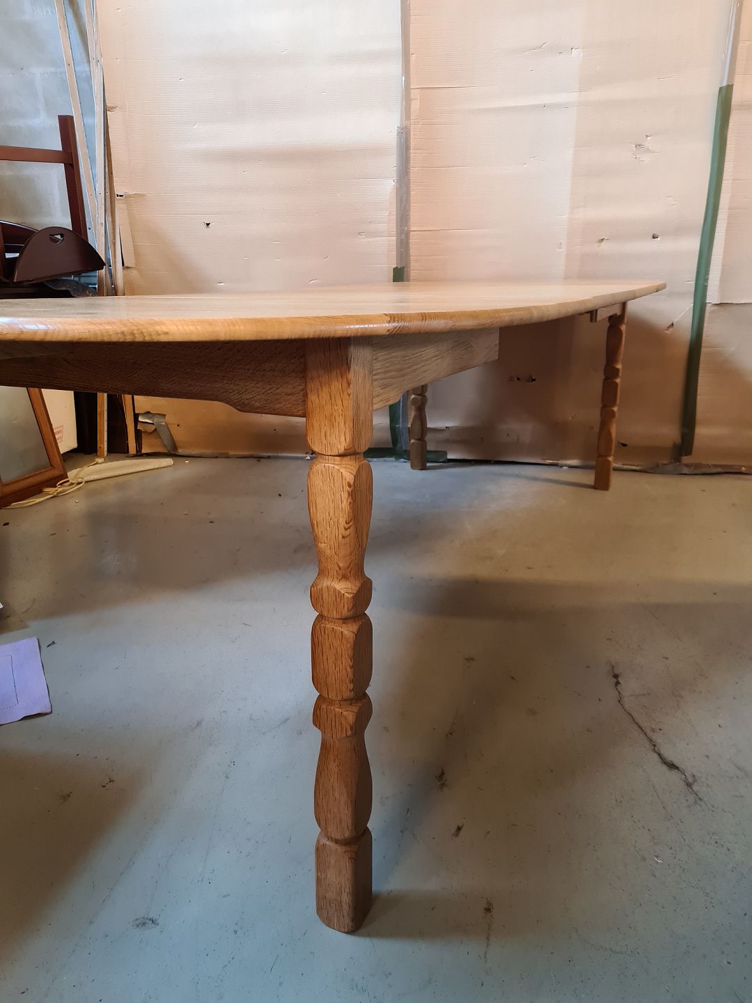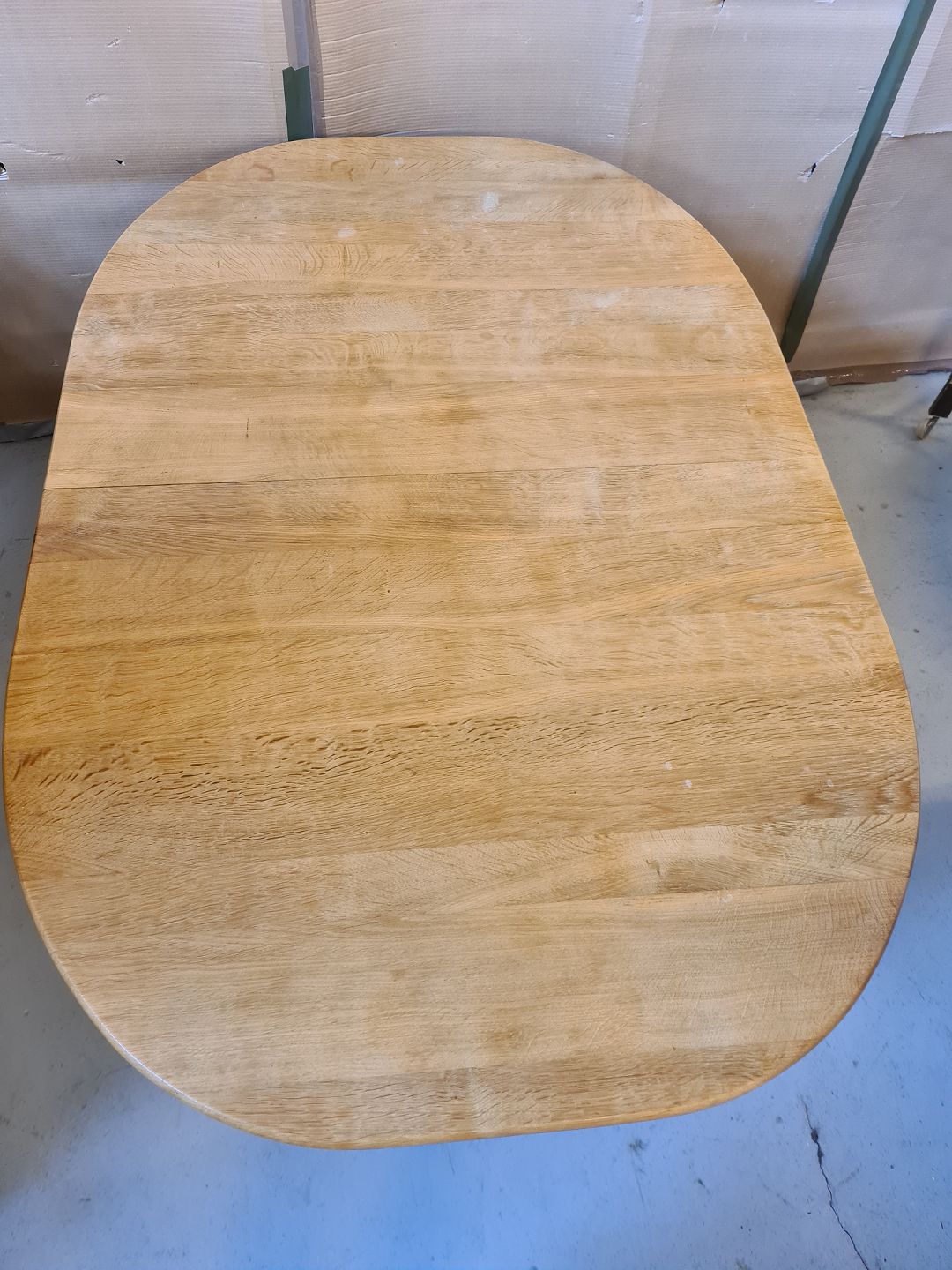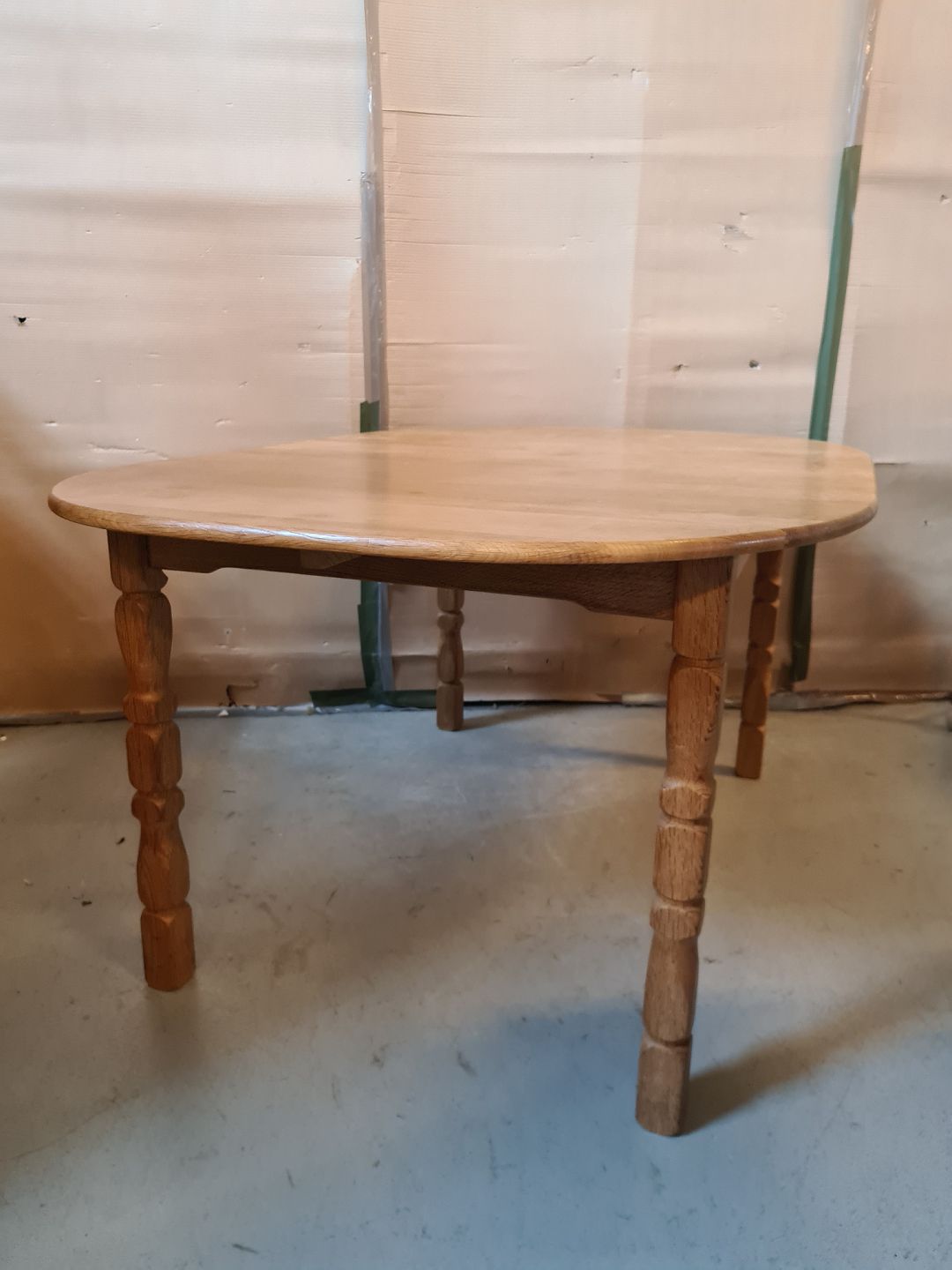 Spisebord i massivt egetræ med 2 tillægsplader, fra 1980erne.