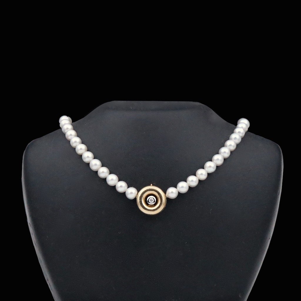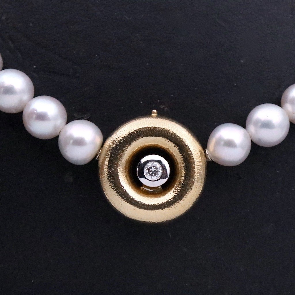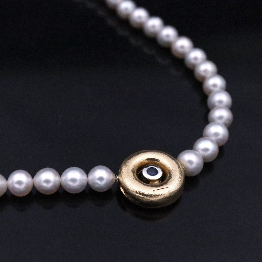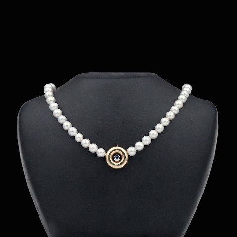 Ole Lynggaard. Pearl Necklace with 14k Gold Clasp with Diamond and Sapphire.