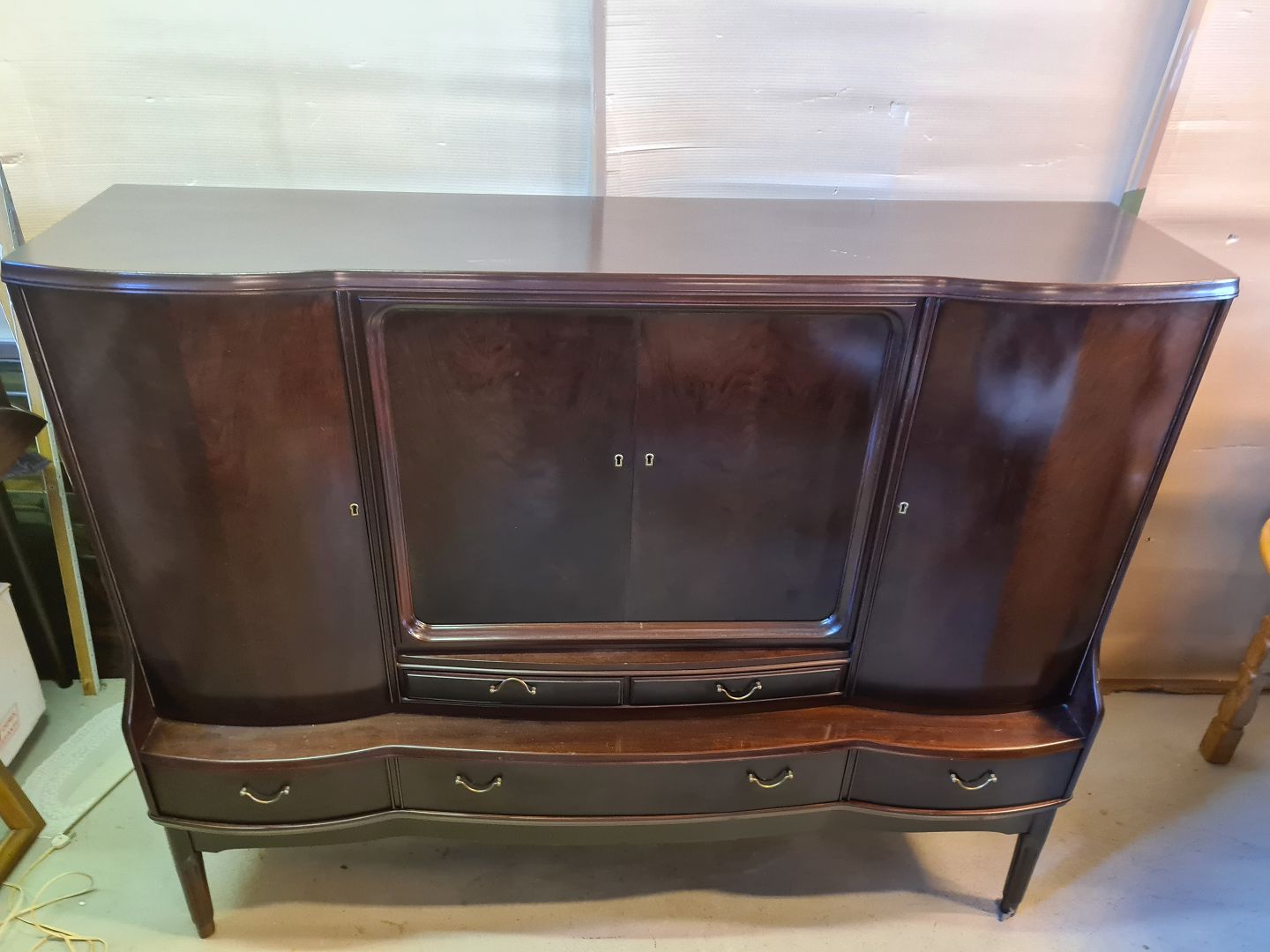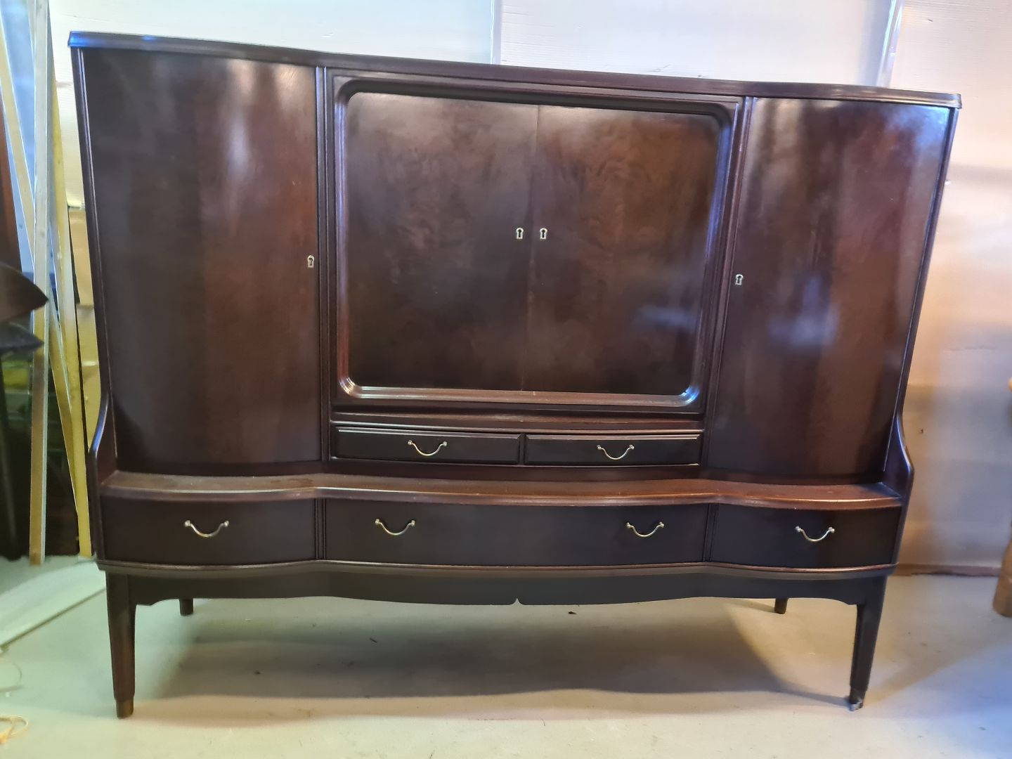 Dækketøjsskab i fineret nødetræ, fra 1960erne.