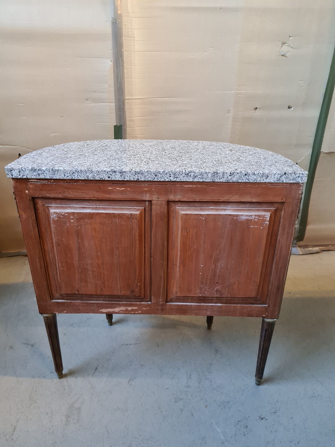 Kommode i fineret mahogni med terrazzoplade, fra 1950erne.