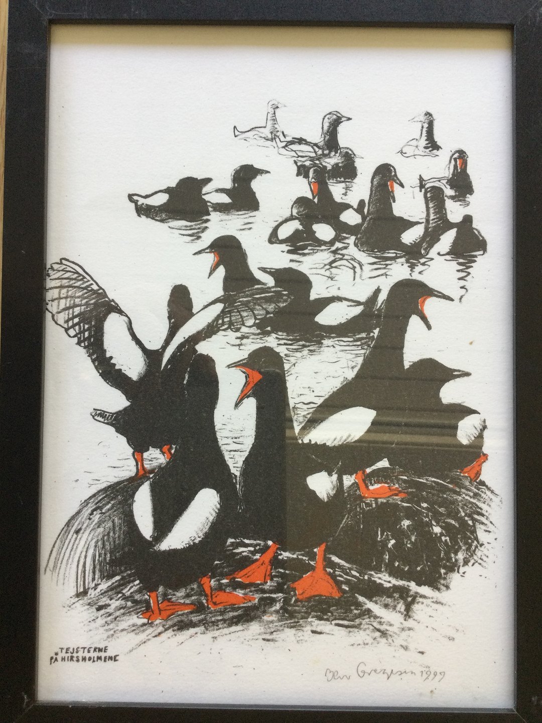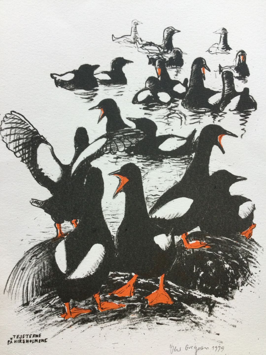 Litografi af Jens Gregersen - Tejsterner på Hirsholmene 1999.