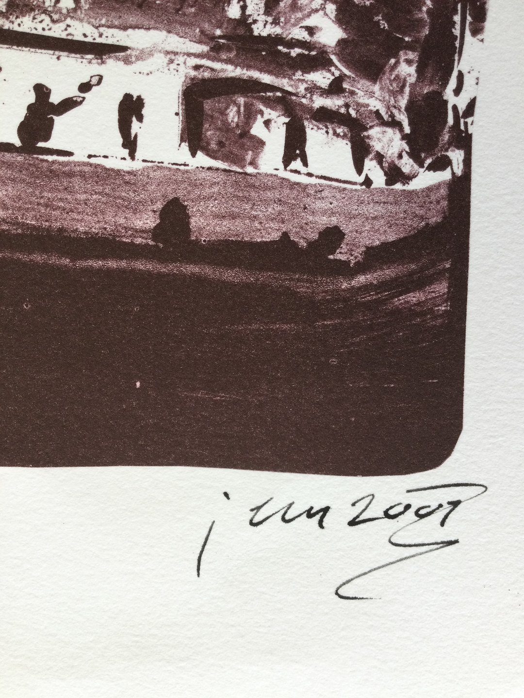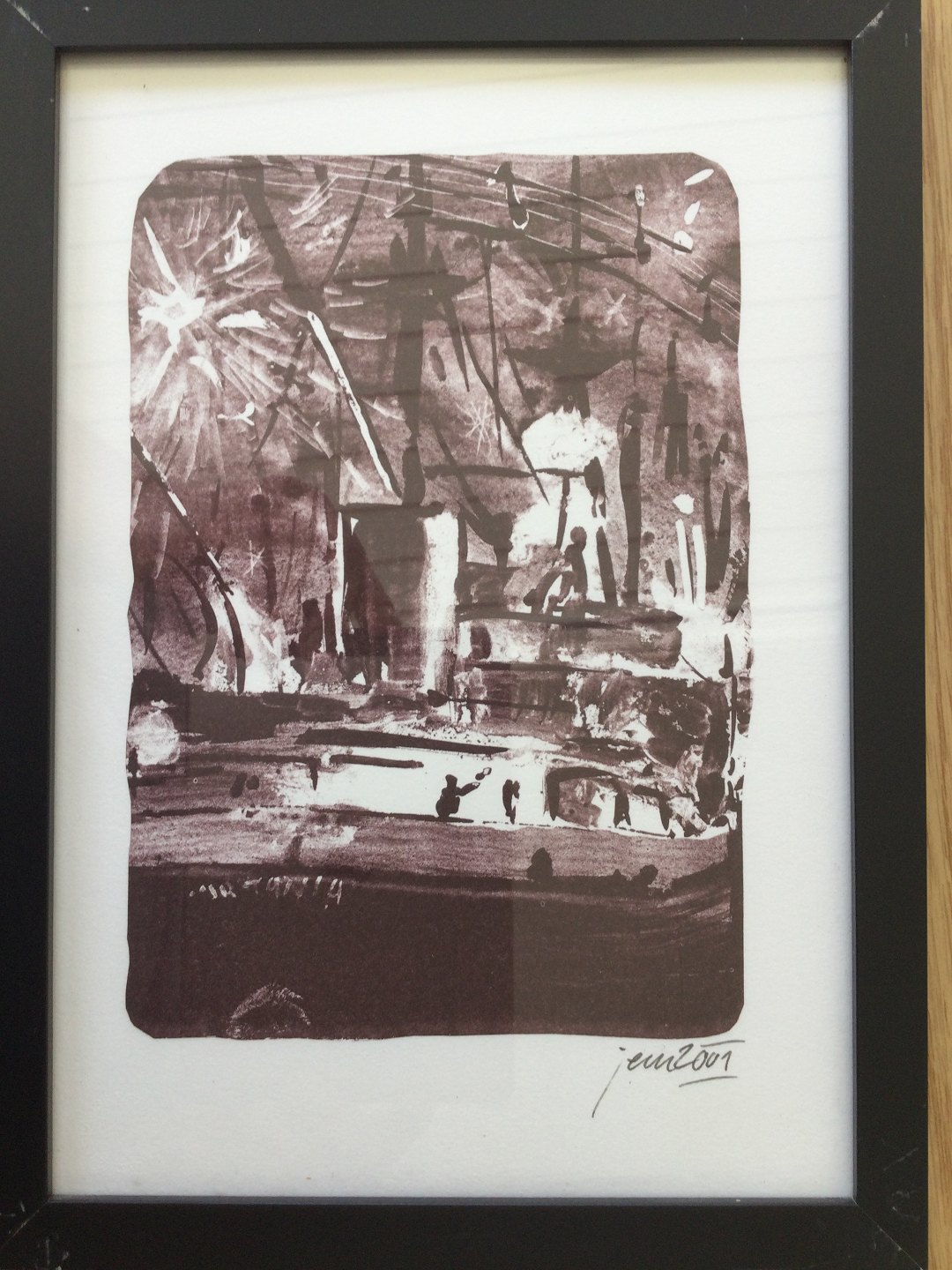 Litografi af Johannes E. Møller 2001 - Stykgodsskibet ankommer til havn.