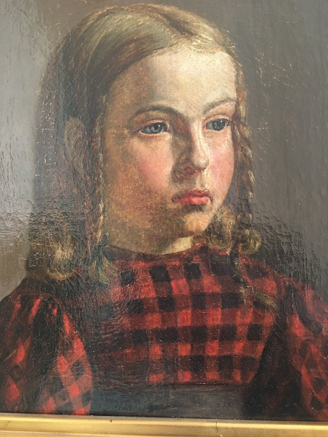Maleri Axel Helsted - Portræt af pige med fletninger.