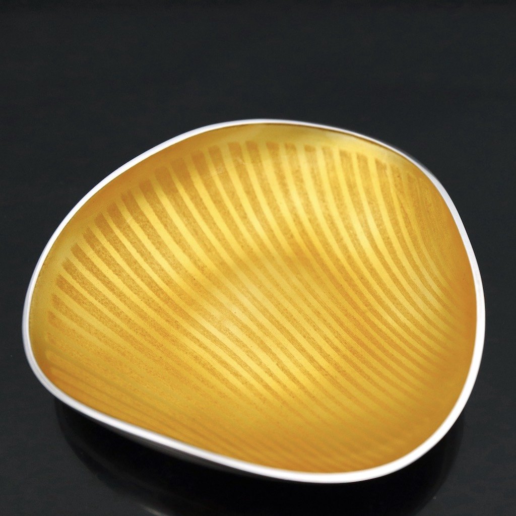 Text zugänglich auf Dänische: A. Michelsen. Lille skål i sterling sølv med gul emalje - Eigil Jensen.