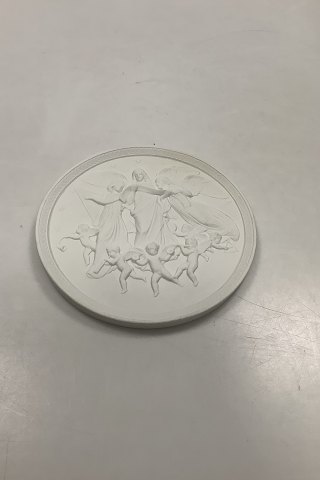 Royal Copenhagen Biscuit Platte Juleglæde i Himlen No 111. Kopi fra 1843 af Chr. Christensen efter Thorvaldsens original fra Nysø 1842. Måler 15,3cm.