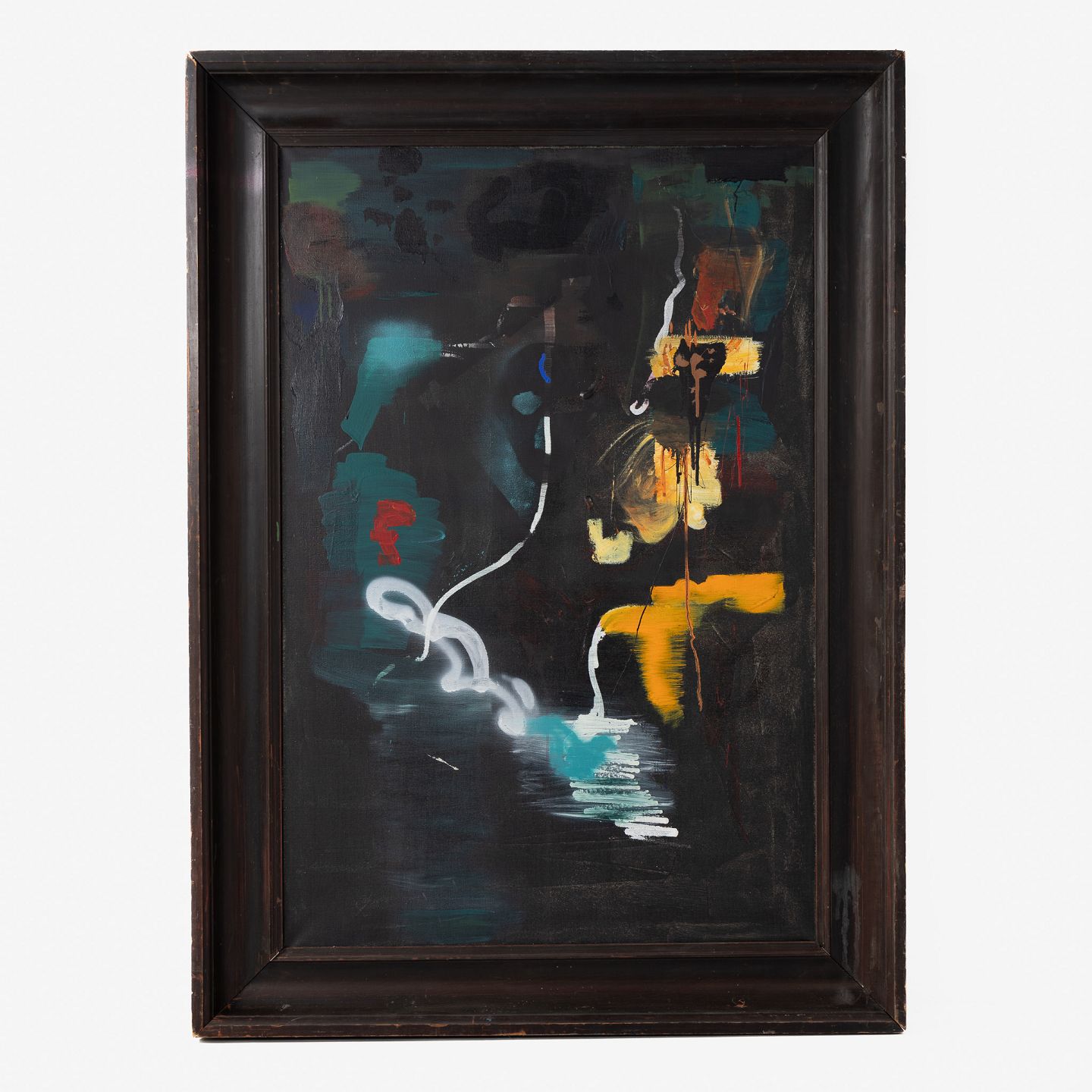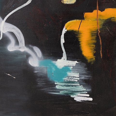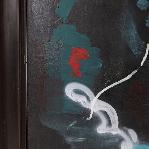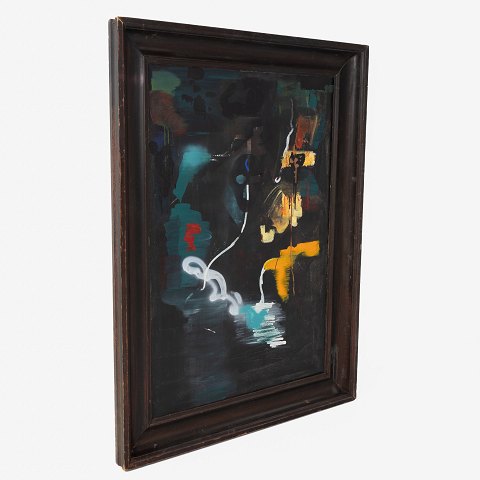 Maleri i sort træramme. Fra kunsterens eget bo. Udstillet på Museum Jorn i 2019.