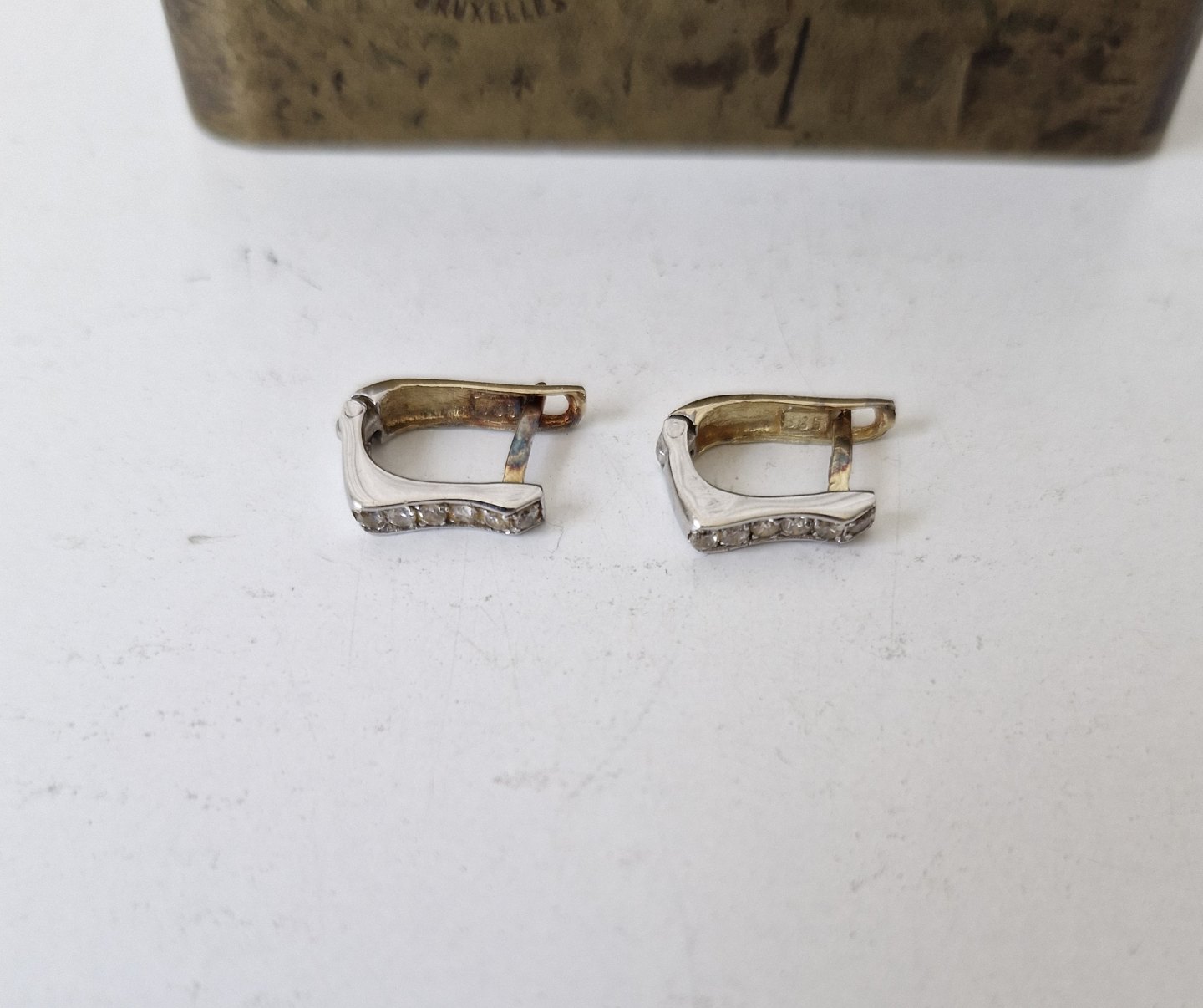 Par øreringe i 14 kt rød og hvid guld med ziakoner