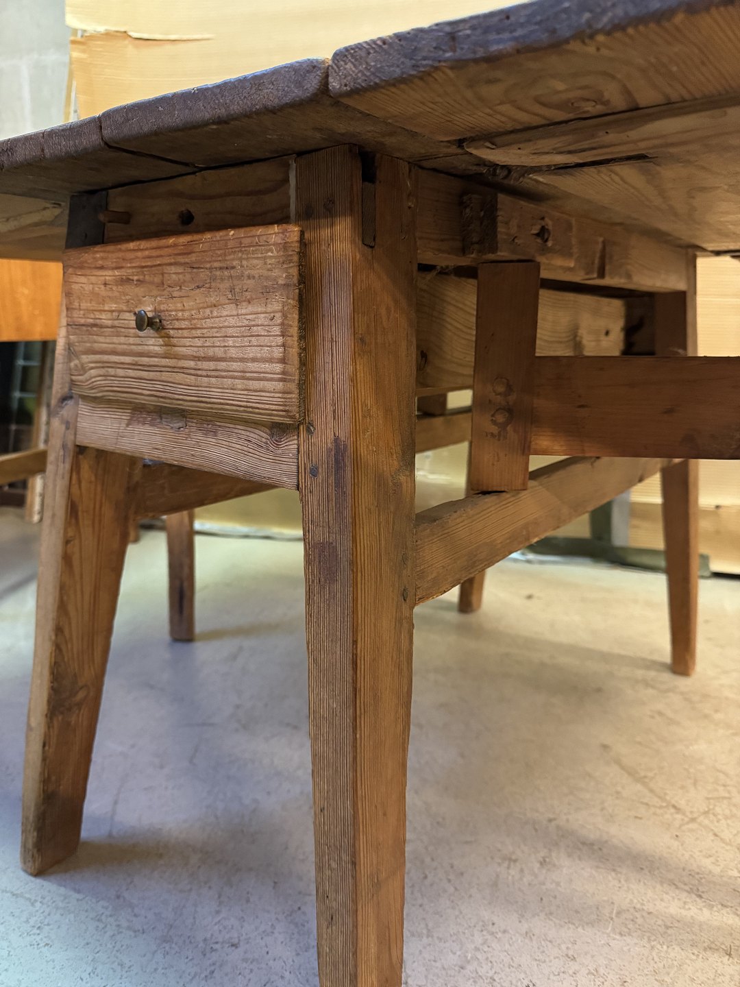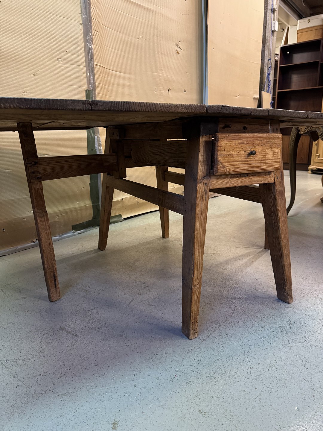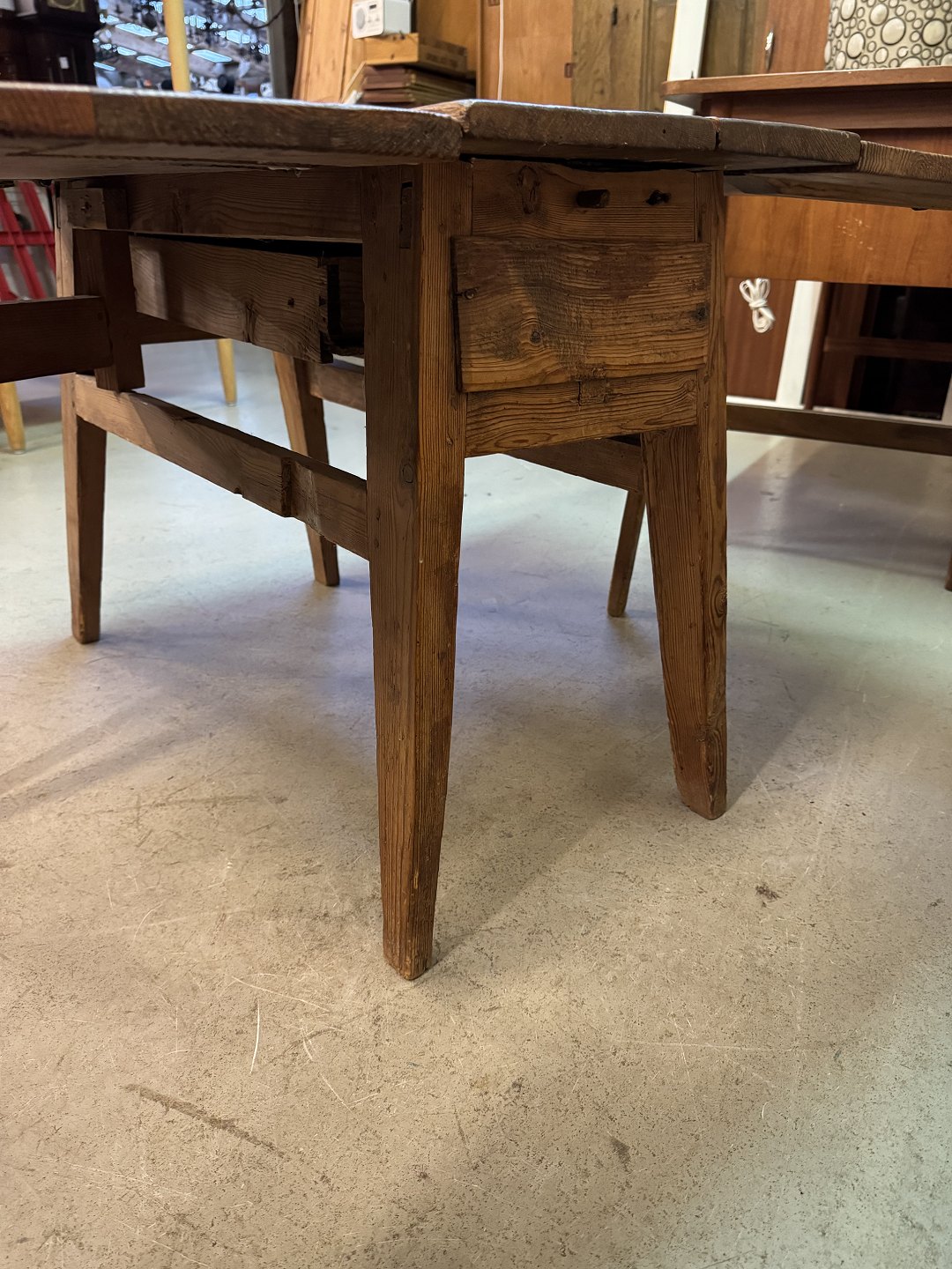 Gammelt Klapbord i Massiv fyrtræ. Det har brugsspor.
