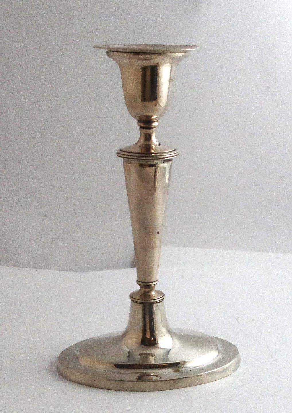 Niels Ebbesen, København. Sølv empire lysestager (830). Højde 23 cm. Stempler er lidt utydelige. Produceret omkring 1820.