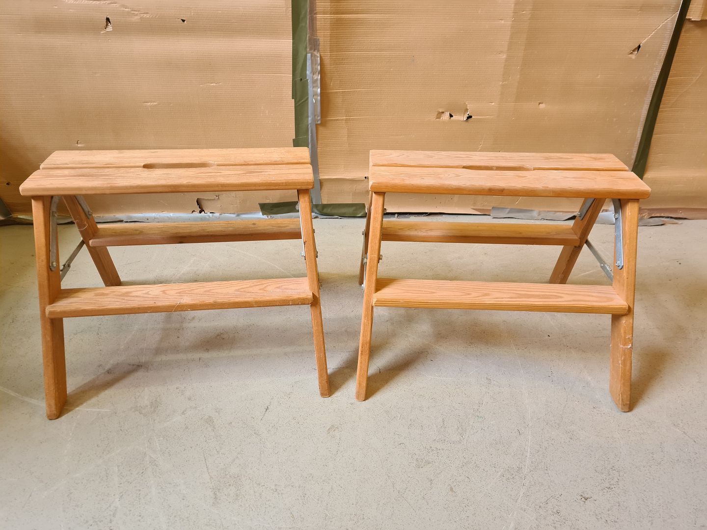 2 Stk. totrins stiger i massivt fyrretræ, fra 1990erne.