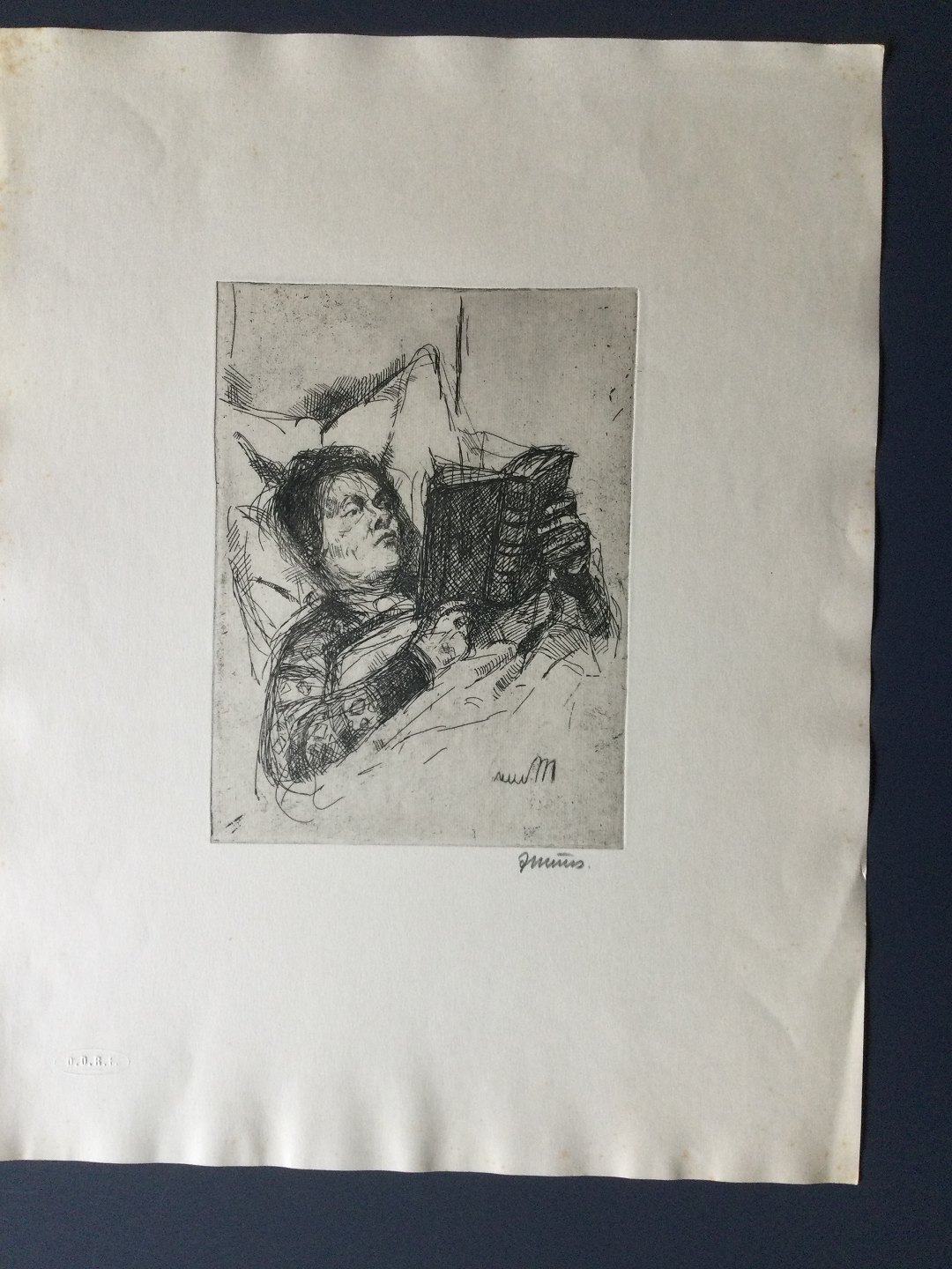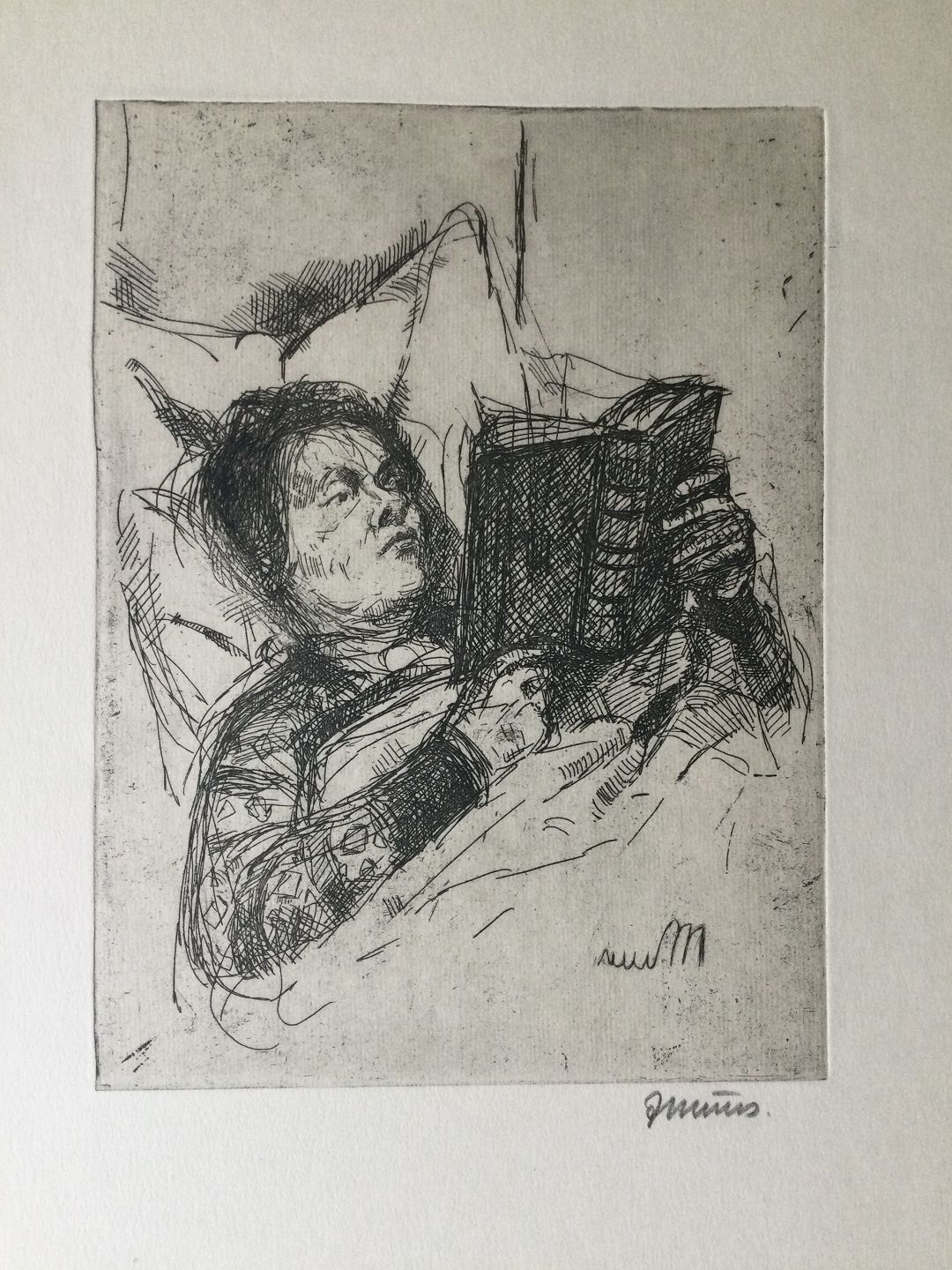 Radering af Jane Muus - Syg, læsende kvinde 1941.