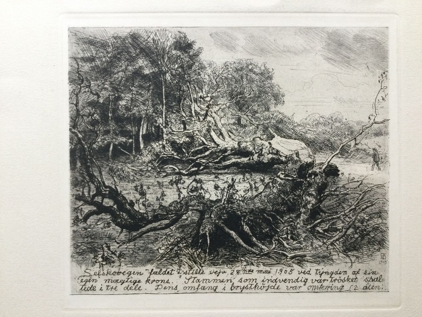 Betegnet - "Selskovegen faldet i Stille Vejr 28 ende Mai 1905 ved tyngden af sin egen mægtige Krone"